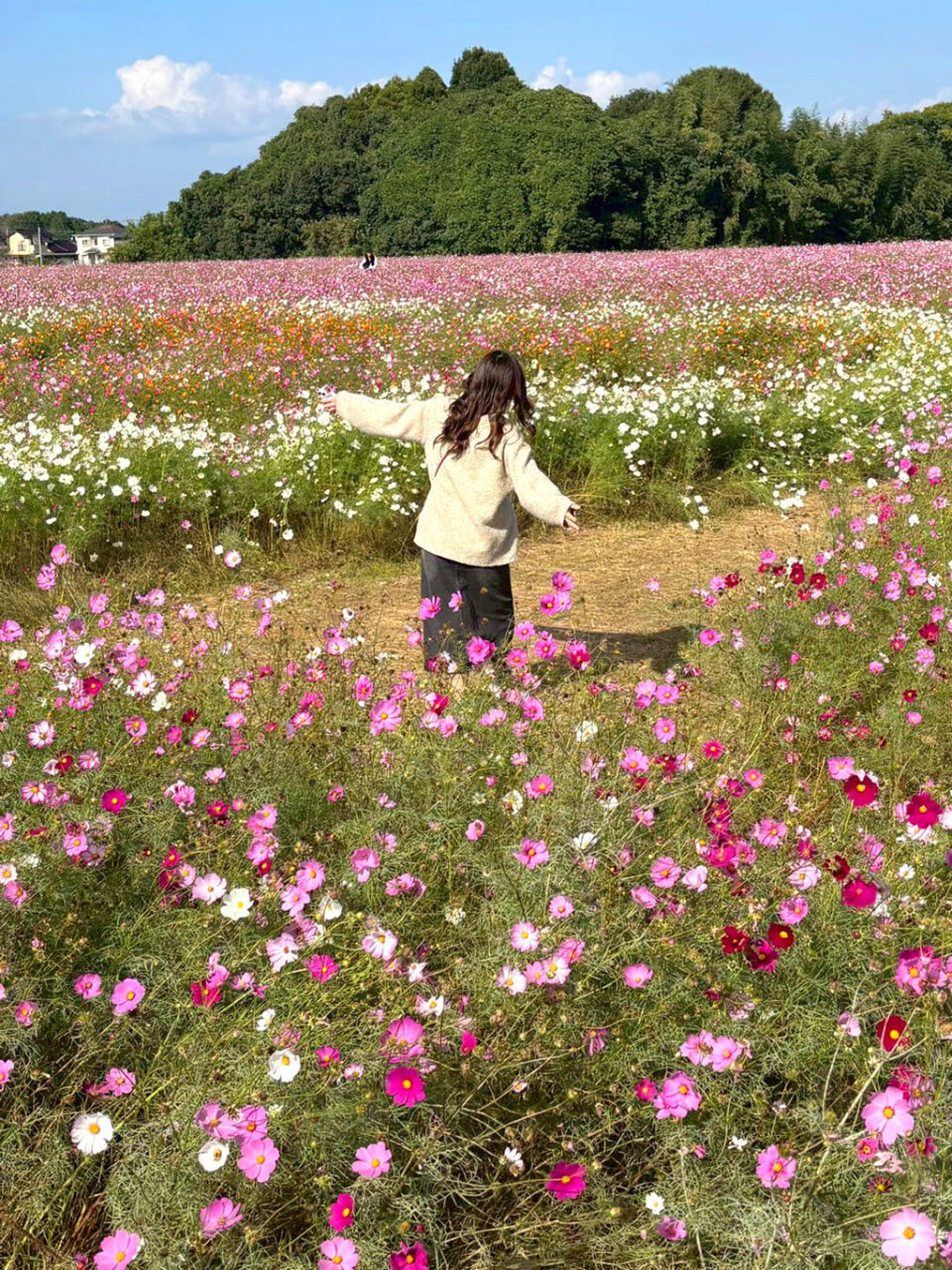 ピンクや白の花々が秋の風に揺れる光景はまさに圧巻です。
