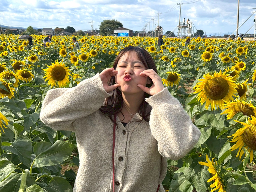 コスモスのやわらかな色合いと、鮮やかなひまわりの黄色が織りなす風景は、まるで映画のワンシーンのよう。作品の世界観を感じながら散策や撮影を楽しむことができます。