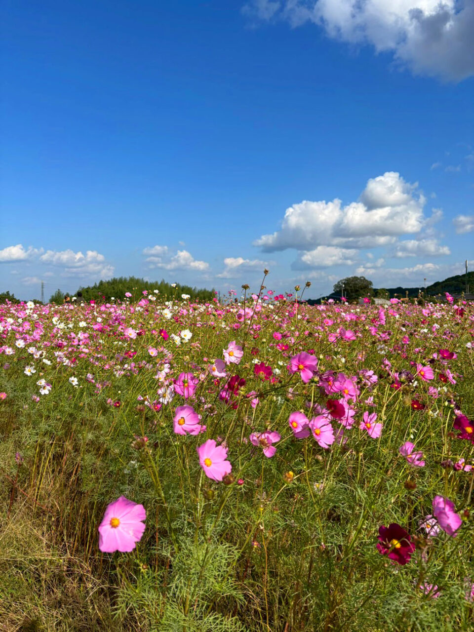 ピンクや白の花々が秋の風に揺れる光景はまさに圧巻です。