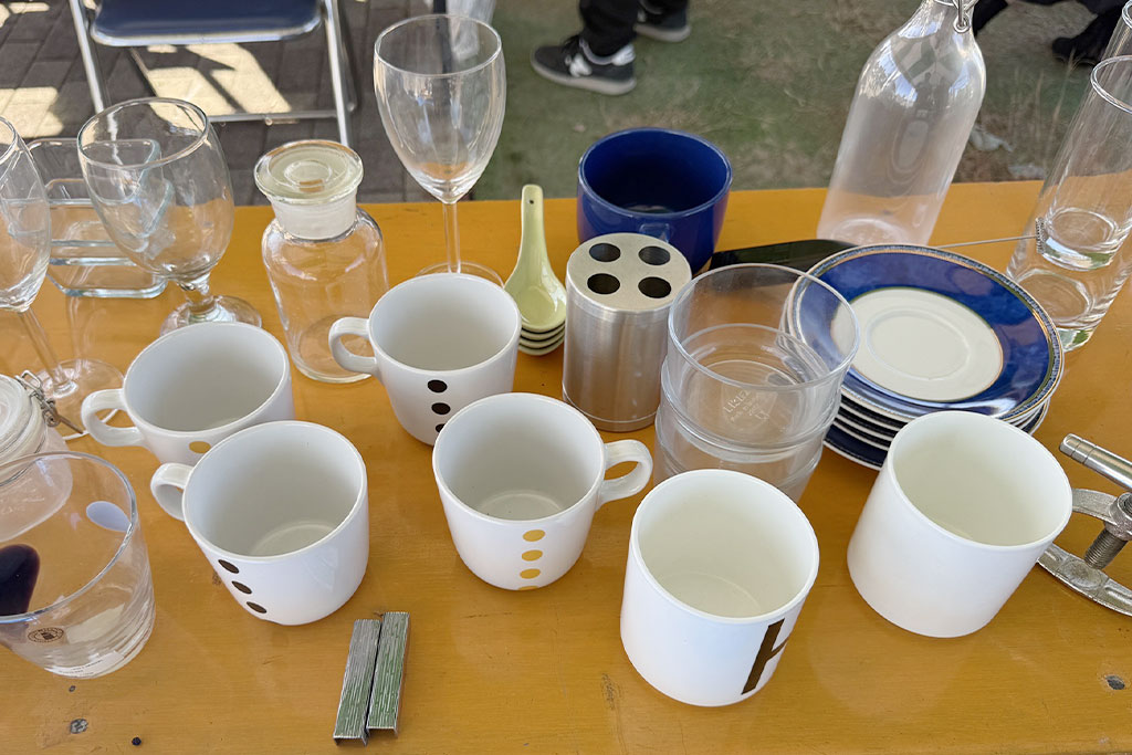 モデルハウス展示品を活用したガレージセールを実施。すべて100円と手に取りやすく、暮らしのアイテムを無駄にせず循環させる取り組みが行われていました。