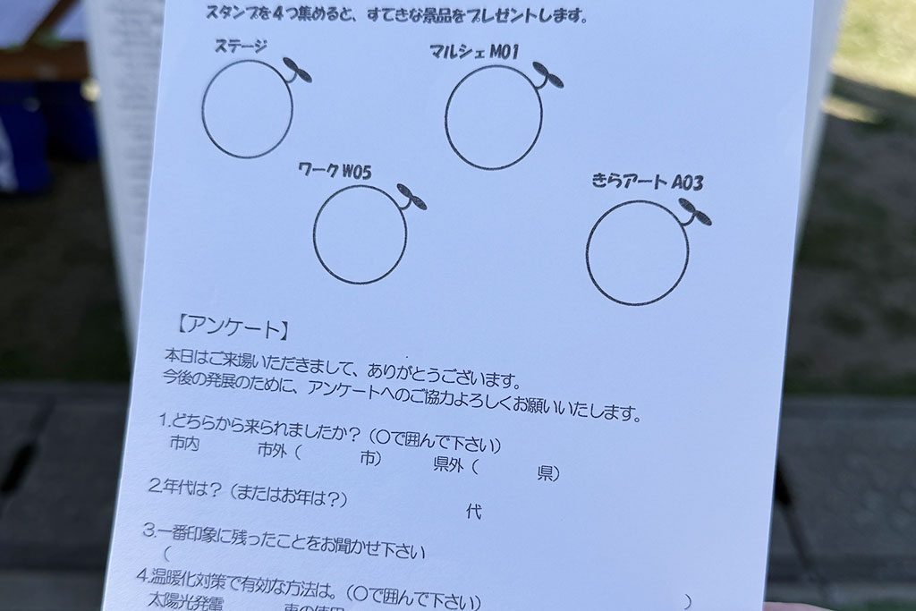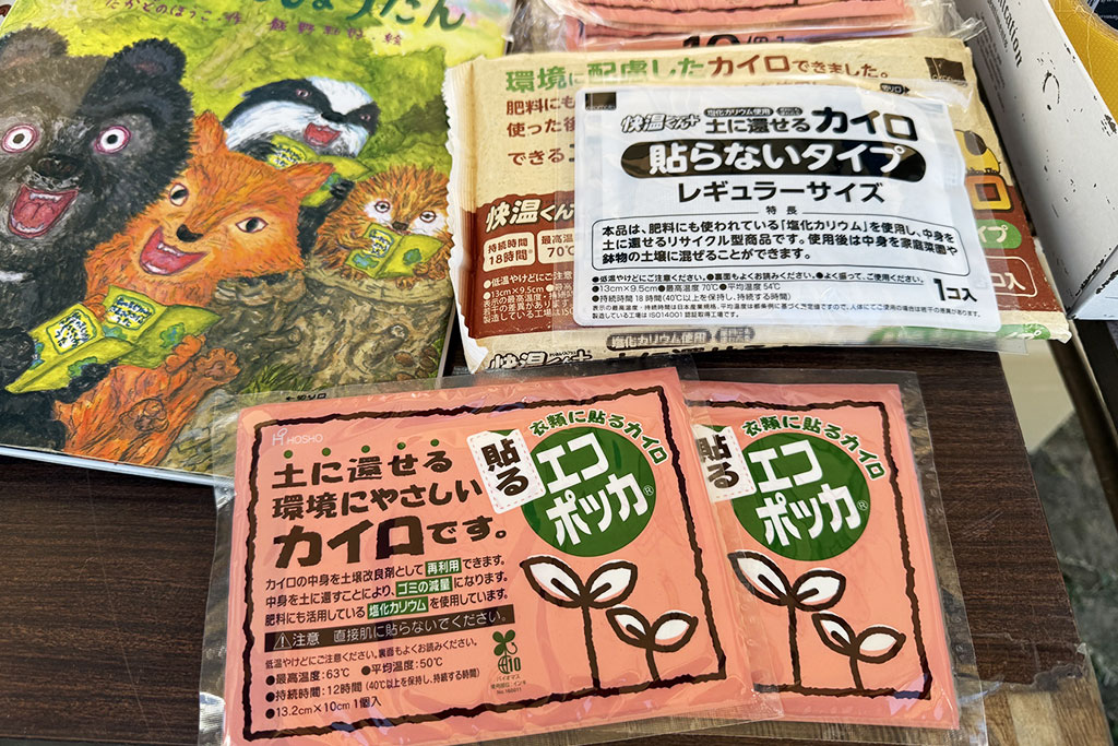 スタンプラリーの景品としていただいたのは、土に還る環境にやさしいカイロ。エコを身近に感じられるアイテムでした。