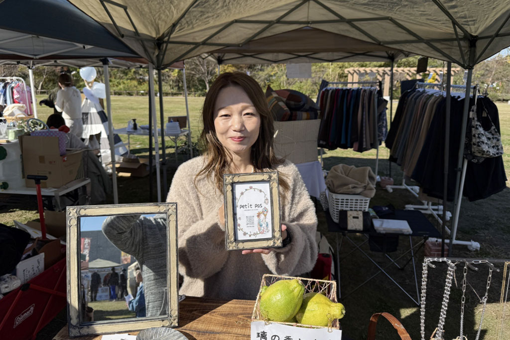 シーグラス作家さん。波に揉まれたシーグラスの「奇跡・出会い・絆・生命力」という石言葉を大切にしながら、アクセサリーや作品を制作されています。やさしい色合いと風合いが魅力で、癒しを感じるアイテムが並んでいました。