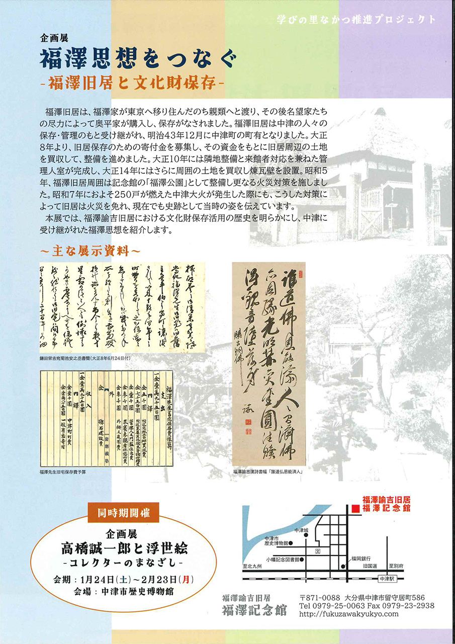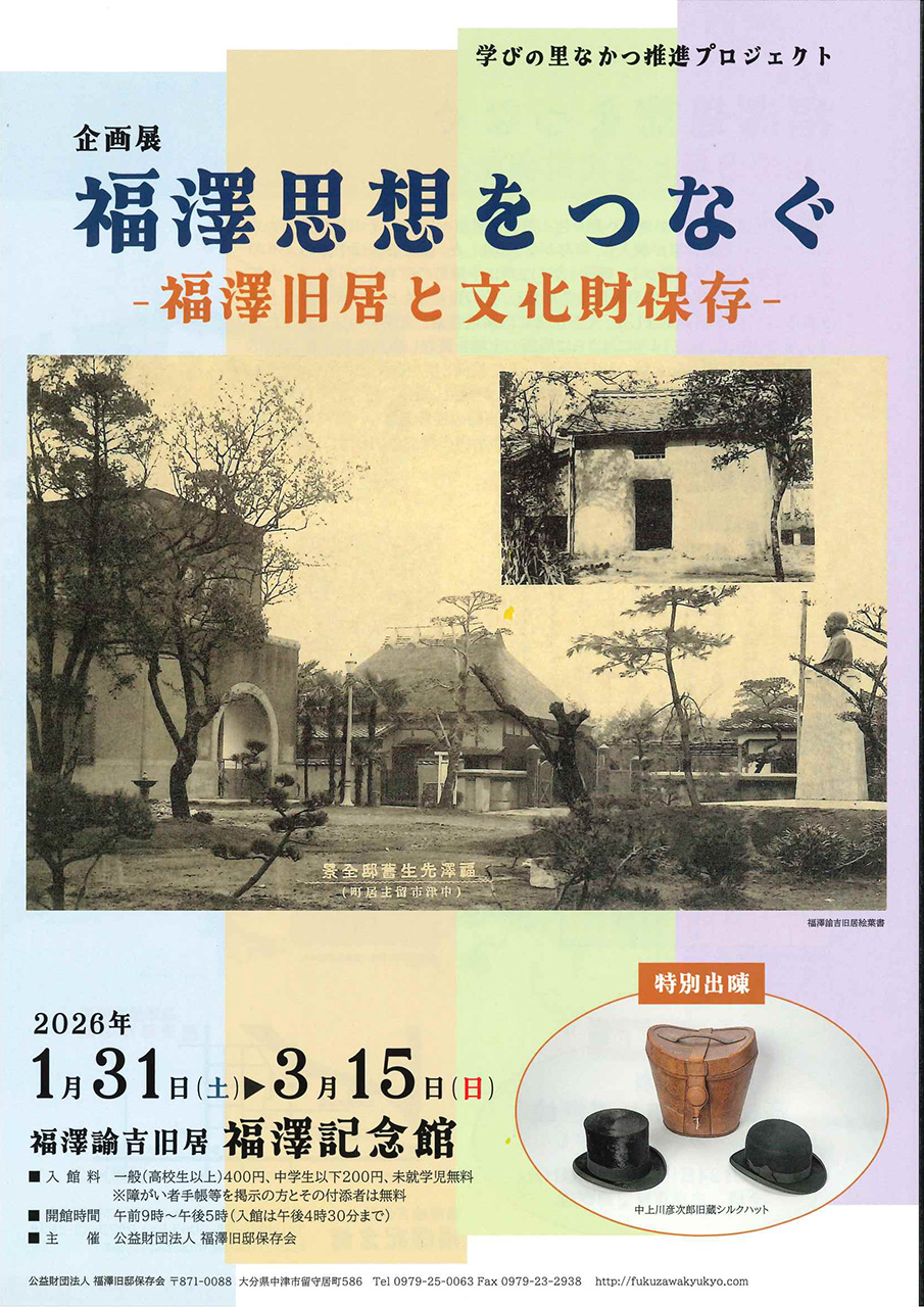 福澤諭吉ゆかりの地・中津市にある福澤諭吉旧居と福澤記念館で、企画展「福澤思想をつなぐ」が開催。旧居の保存や文化財保護の歩みを紹介しながら、福澤の思想がどのように今へ受け継がれてきたのかをたどります。歴史と文化に触れられるこの機会に、あらためて郷土の偉人の足跡を感じてみませんか。