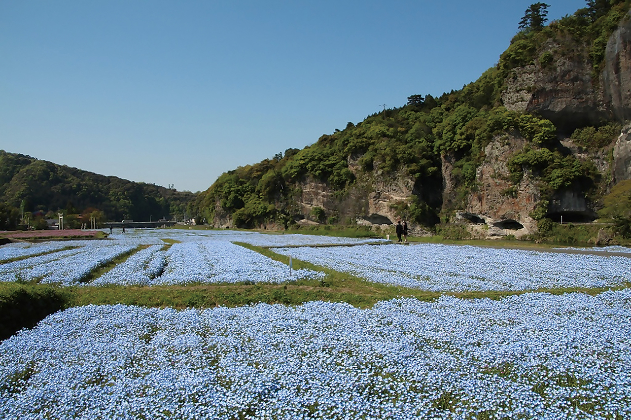 青に染まる本耶馬渓町のネモフィラ畑横でイベントを開催します。当日は太鼓の演奏や神楽、飲食ブースの出店などもあります。