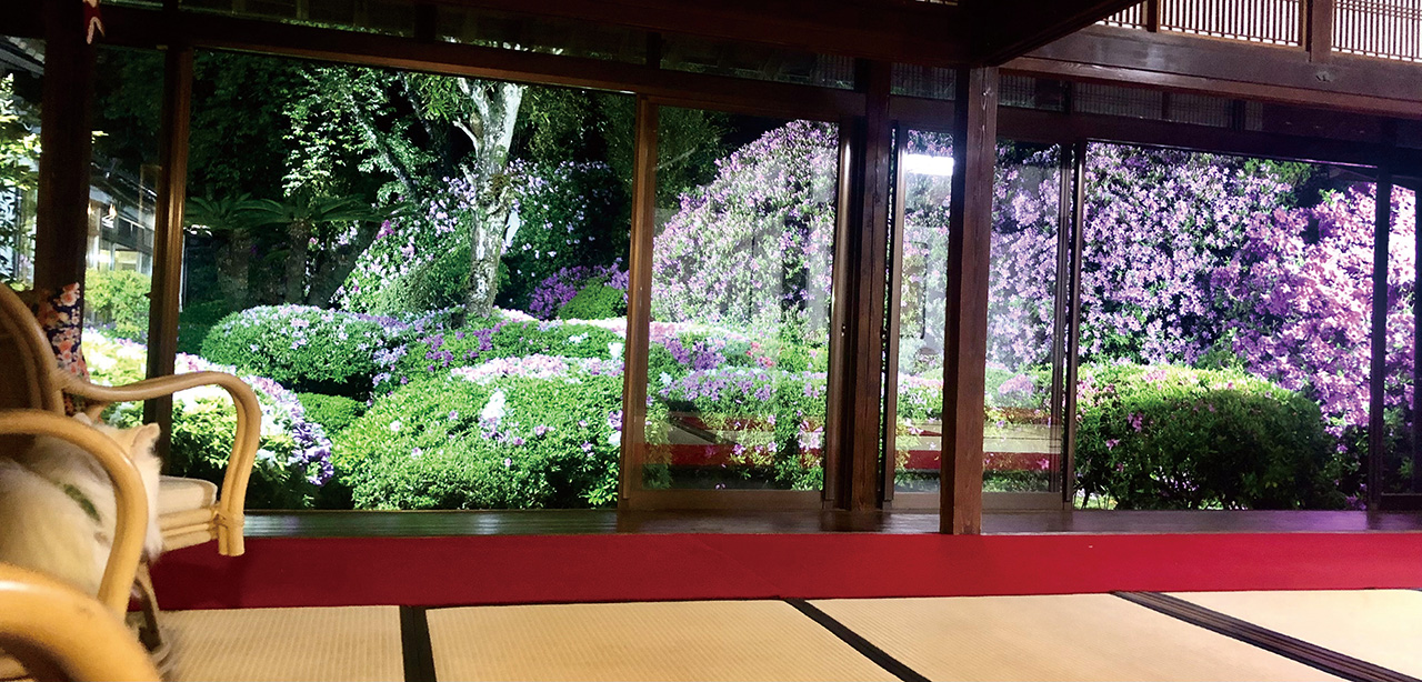 年に二晩のみ、ツツジの庭をライトアップ。日本一早い知覧茶の新茶振る舞いもあります。