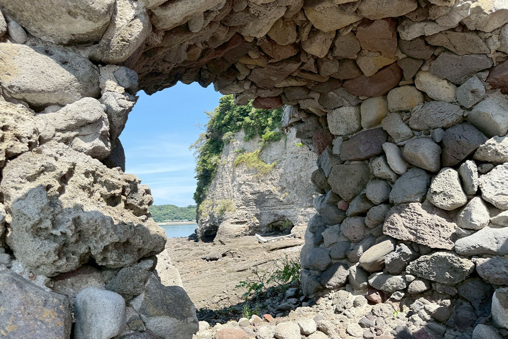 粟嶋社は海に突き出した岩窟に社が設けられている、全国的にも珍しい立地の神社。寛永2年(1625年)創建と伝えられ、祀られているのは小彦名命(すくなひこなのみこと)。古くは医療や安産の神として信仰され、現在は縁結びや良縁を願う人たちに親しまれています。