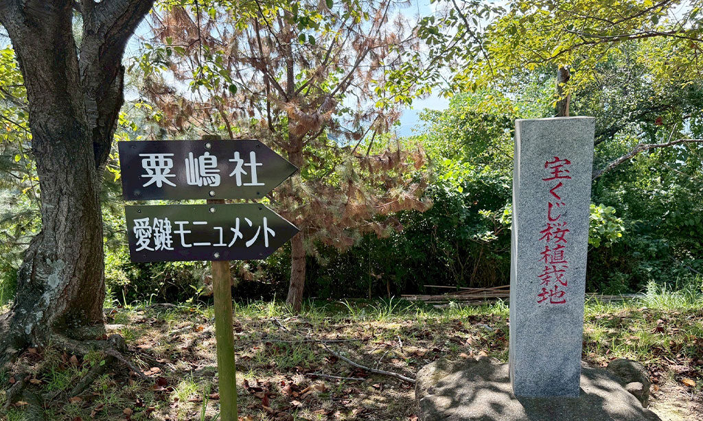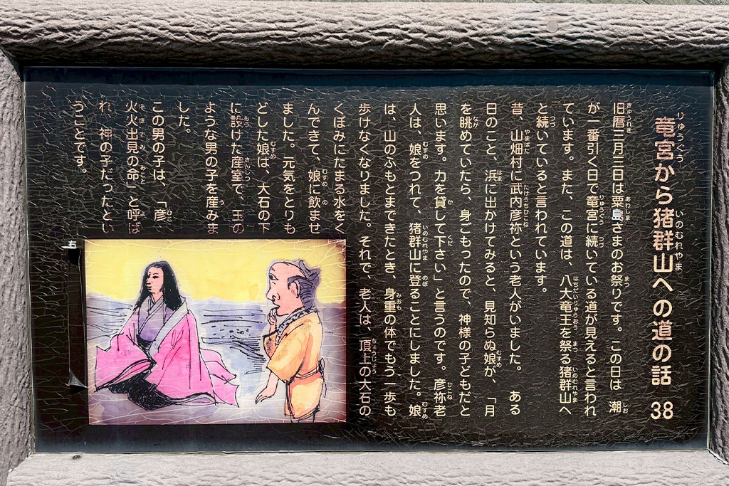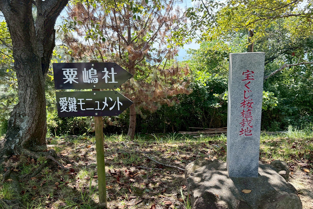 駐車場周辺には地元の伝説や粟嶋社の由緒、案内図などの看板がいくつかあります。昔話(鬼になった法師とか竜宮の話)を読んでから散策すると、ちょっと物語性が増して楽しい。観光マップもあるのでルート確認に便利です。