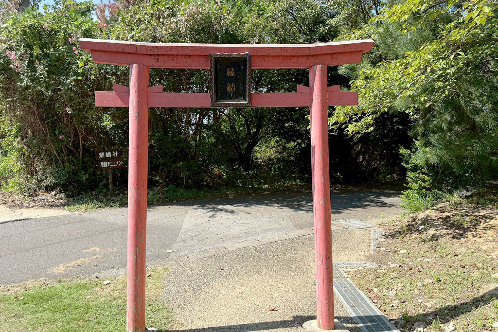 鳥居に「縁結」と刻まれており、粟嶋社へ続く道の目印になっています。鳥居をくぐって右手の道を進むと、海沿いに建つ粟嶋社へ行けます。道は整備されていて歩きやすかったです。