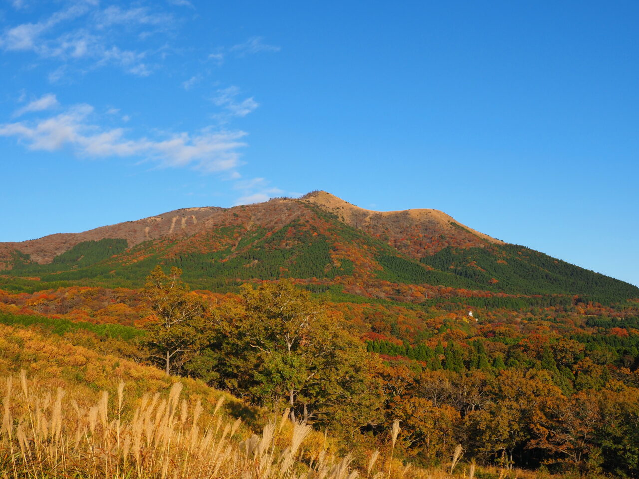 10月下旬から11月中旬にかけては、標高や場所によって徐々に色づき始め、由布岳や久住高原、瀬の本高原などの名所が紅葉の見頃を迎えます。鮮やかに色づいた山々と、遠くに広がる阿蘇五岳の雄大な姿は見事です!