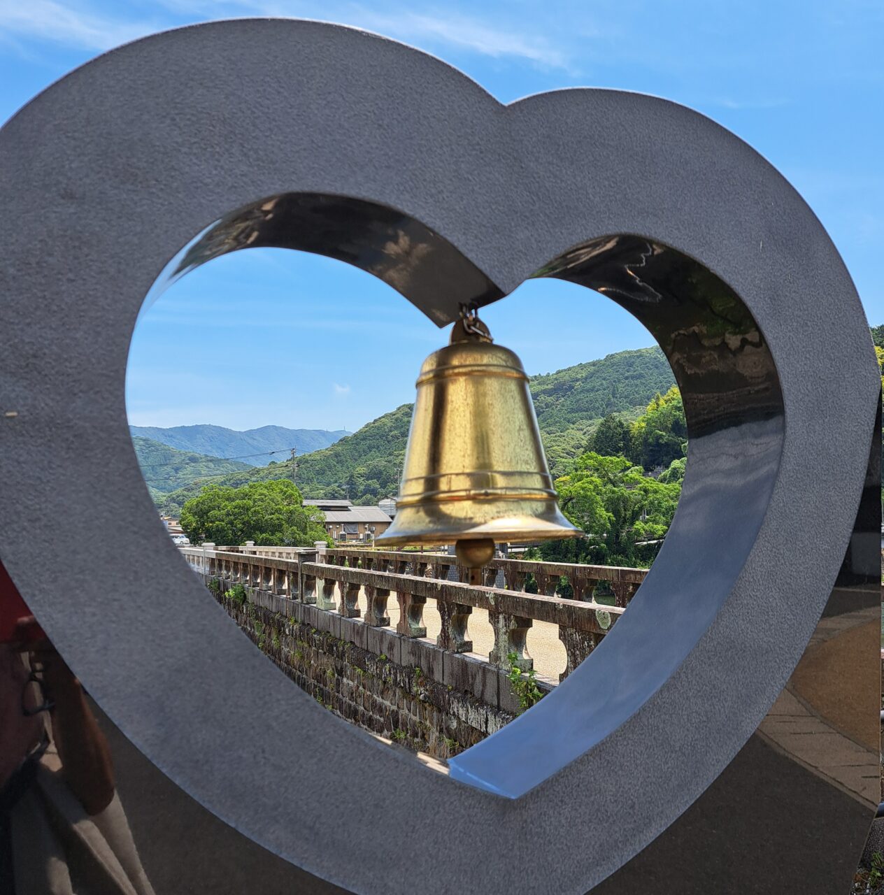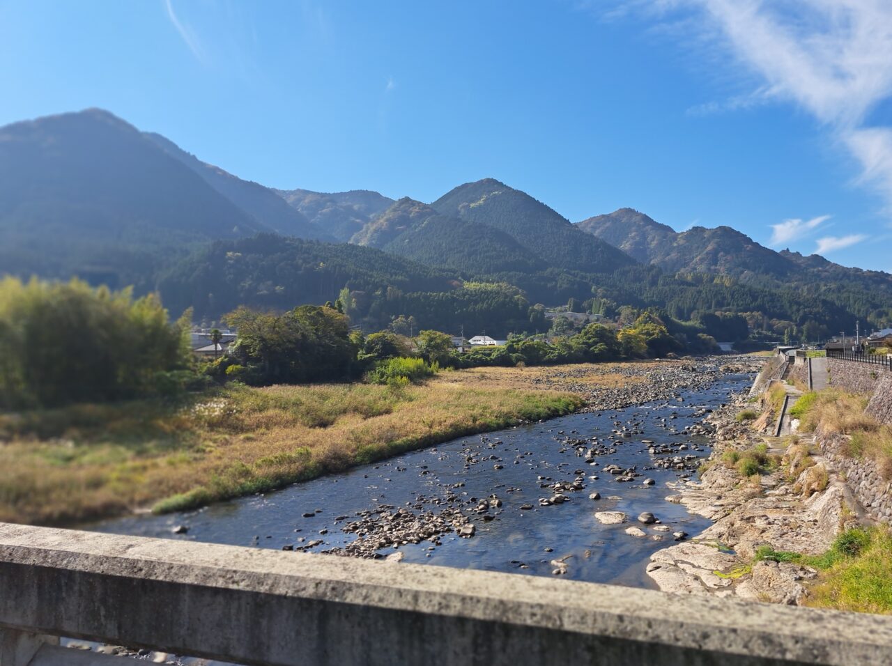 橋の上流側は山々が連なり、