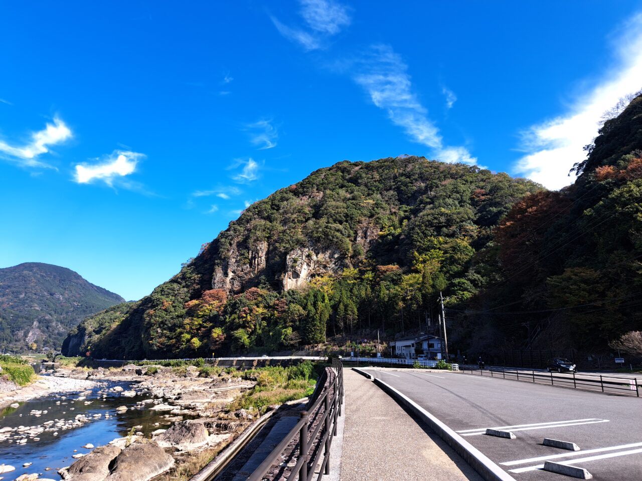 駐車場も階段も整備されており、対岸には西浄寺という鐘つき堂のあるお寺も見えて、風情のある景色です。