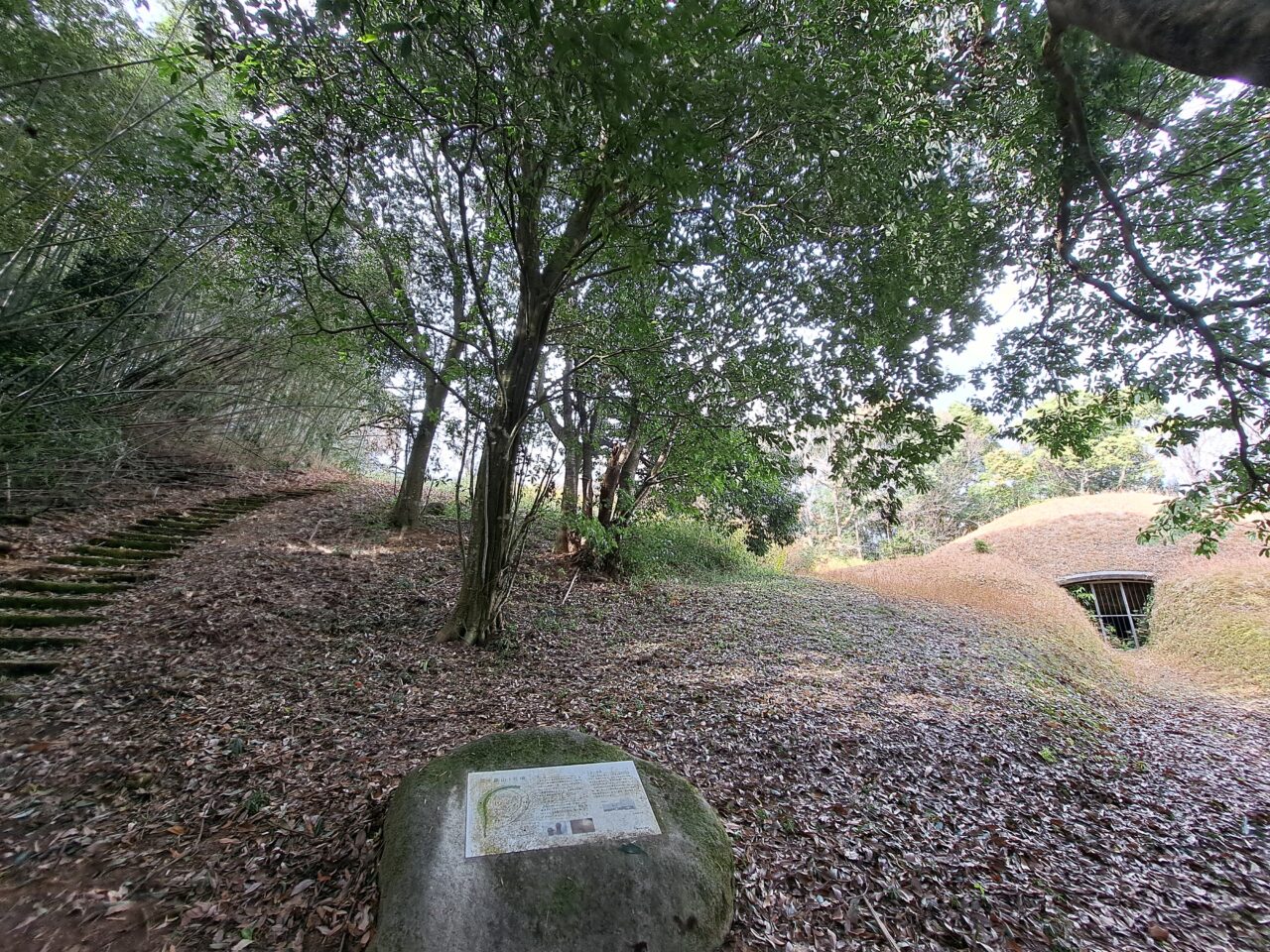 ここからは見えませんが、1号墳のさらに向こうに3号墳があるようです。3つの古墳のうち、真ん中の1号墳が国の史跡に指定されています。