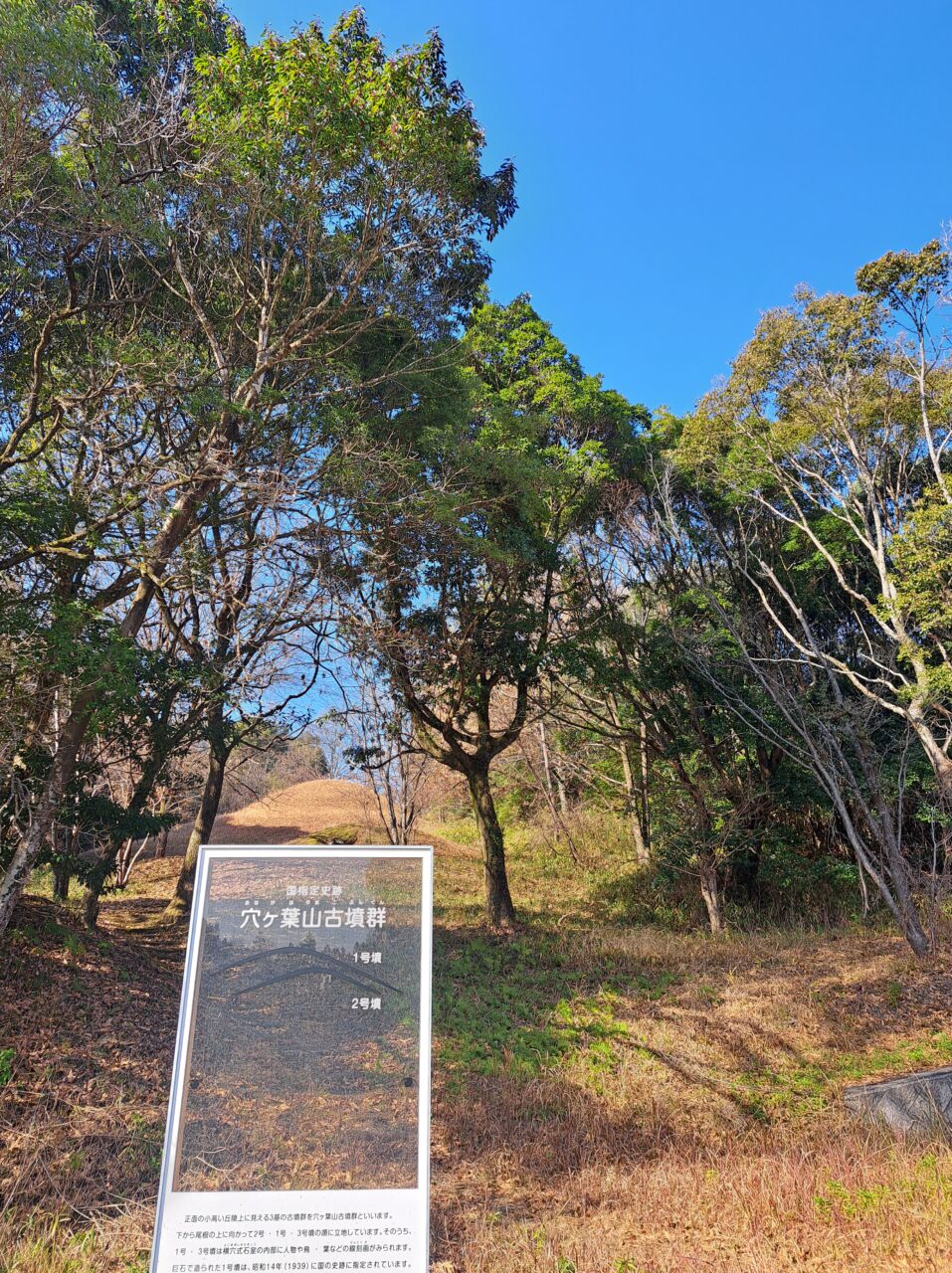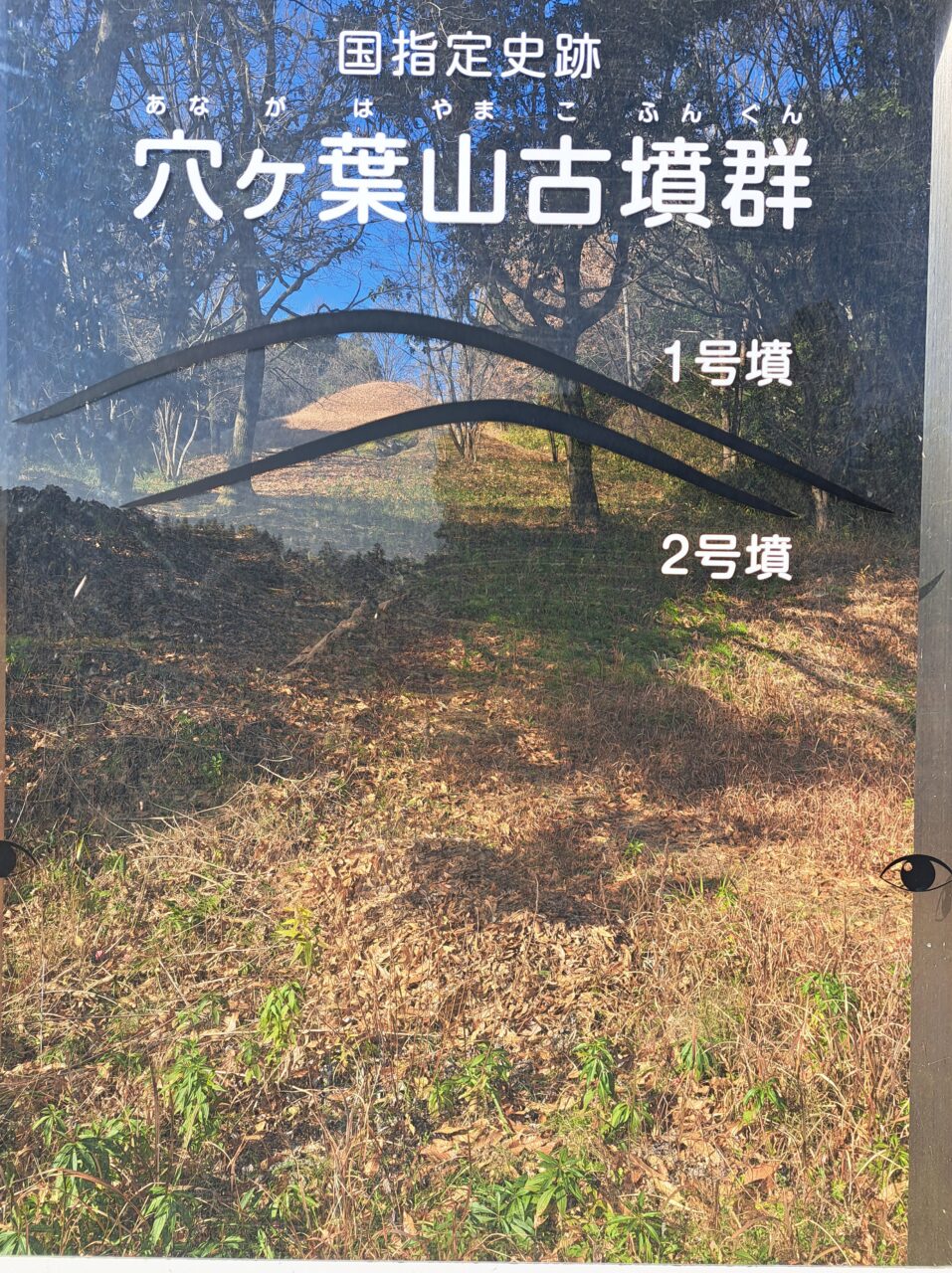 穴ヶ葉山古墳群は周囲を竹林や雑木林に囲まれ、いろいろな小鳥の声が聴こえて、よく晴れた冬の日には気持ちのよいところです。ちょっとした森林浴・トレッキング気分を味わえます。ぜひ一度訪ねてみて、古代ロマンに想いを馳せつつ、のどかな景色を楽しんではいかがでしょう。