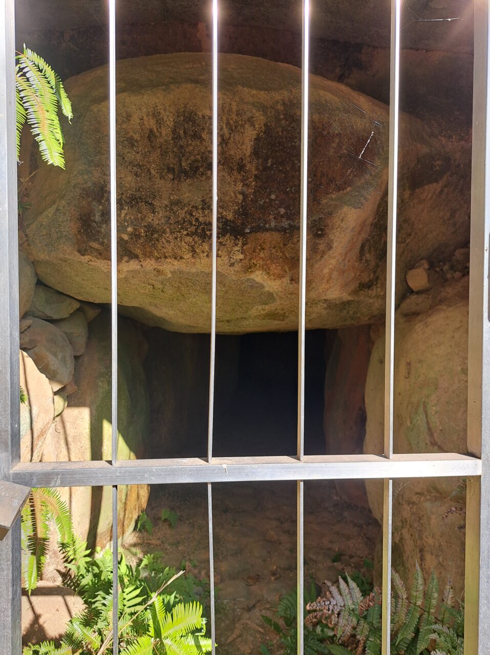 石室へと続く入り口。天井部分の石は巨大で、古代の技術でどうやってこの巨石を運び、組み上げたのか、興味深いです。奥には壁画もあるそうですが、さすがにここからは見えません。