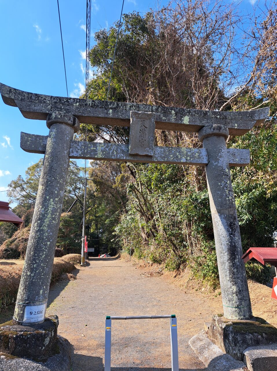 鳥居の右側の砂利道を入っていくと広い駐車場と梅苑があります。