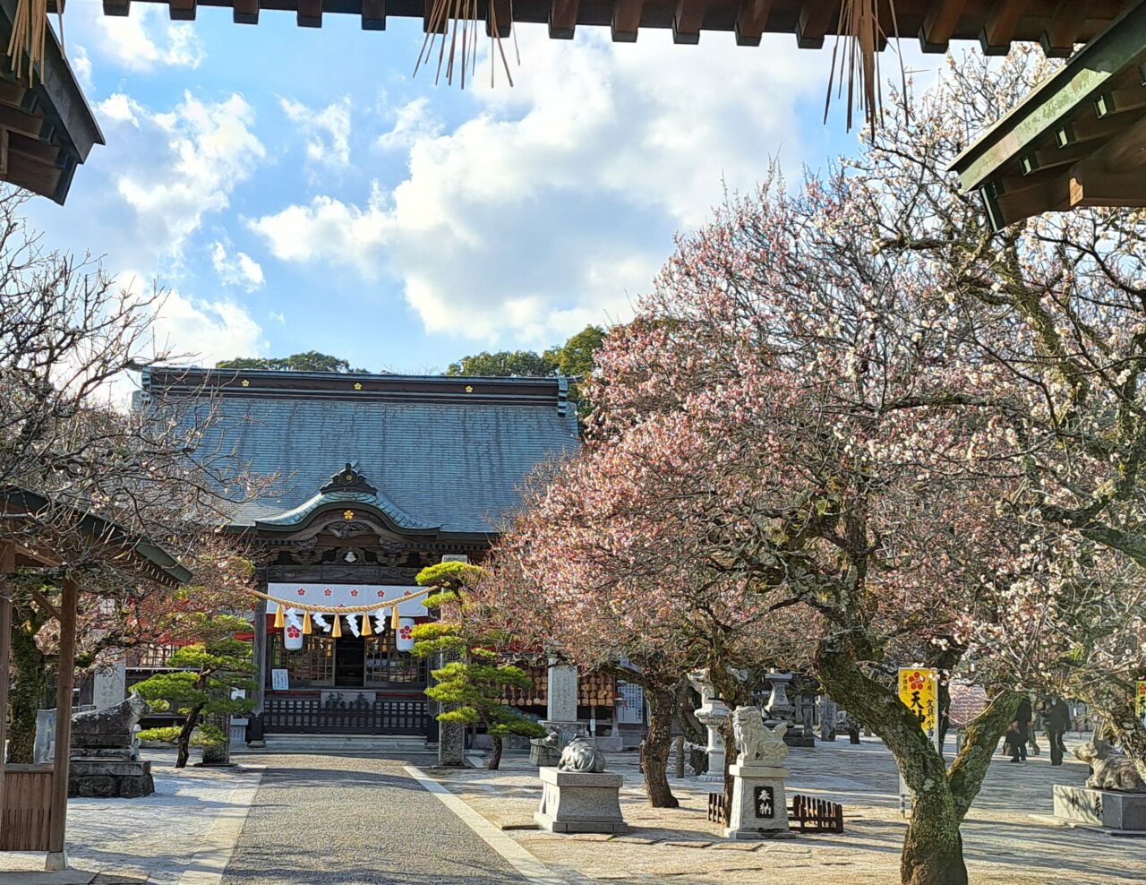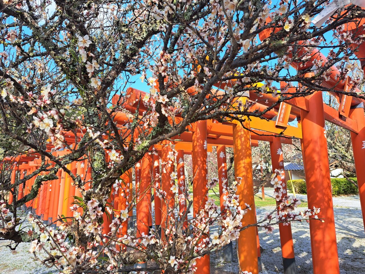豊前市や中津市からもアクセスがよく、約1000本の梅が植えられている梅の花の名所・綱敷天満宮で梅が見頃を迎え『しいだ梅祭り』が開催されています。