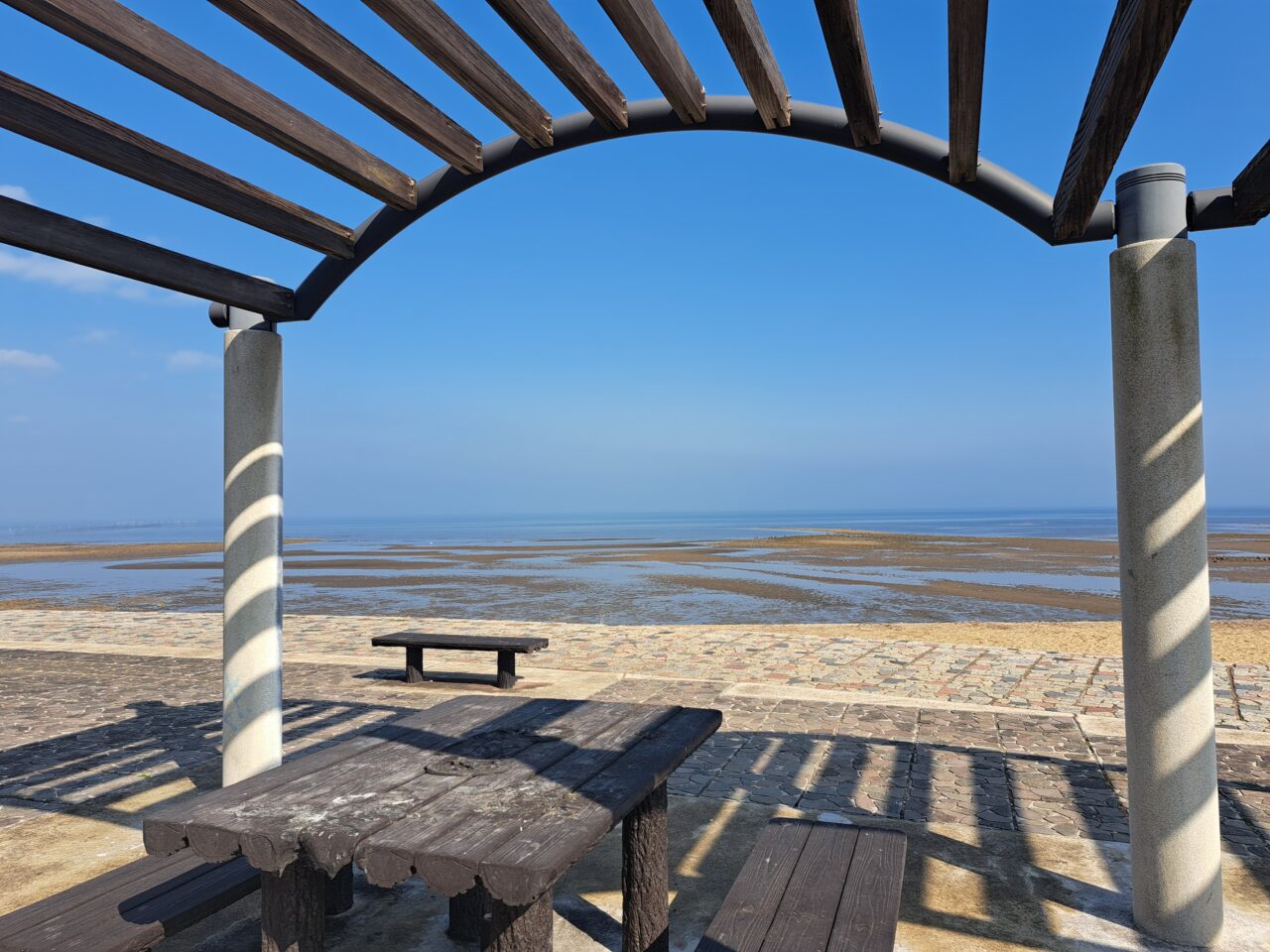 「浜の宮」と呼ばれるだけあり、駐車場前の土手から海を一望でき、海を眺める休憩所もあります。