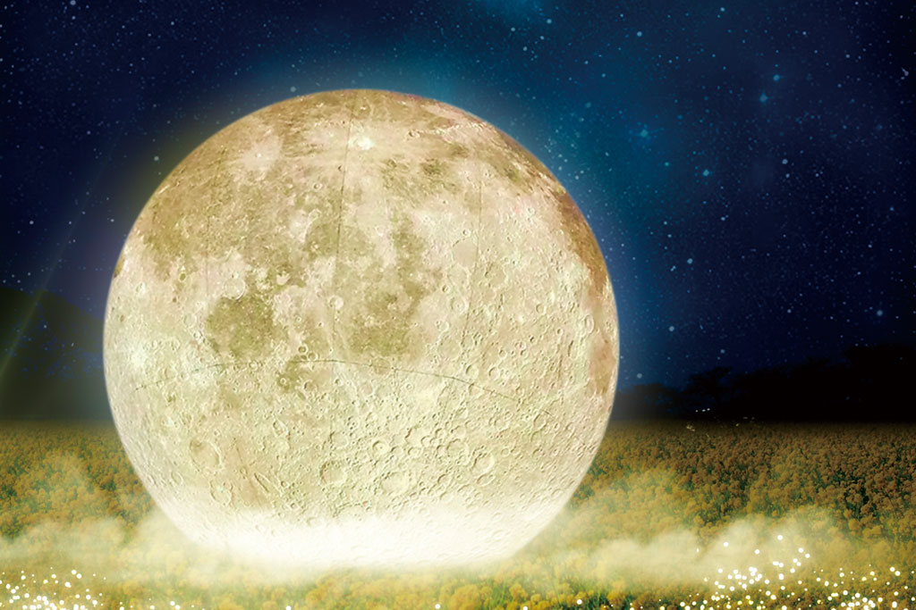 菜の花畑には月のオブジェが設置され、LED照明でやさしく照らされた花畑が幻想的な空間を演出。