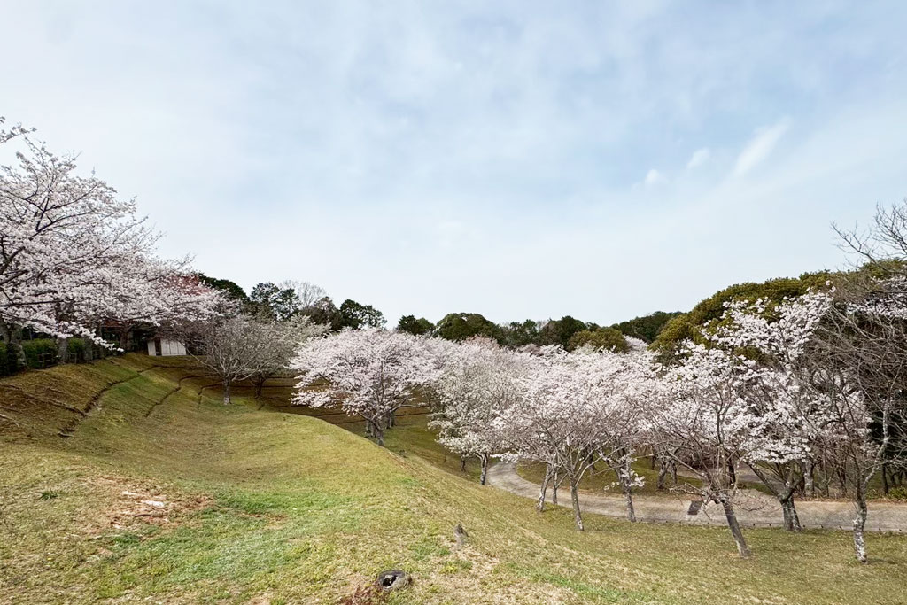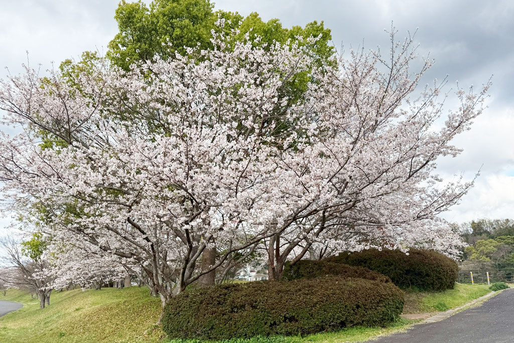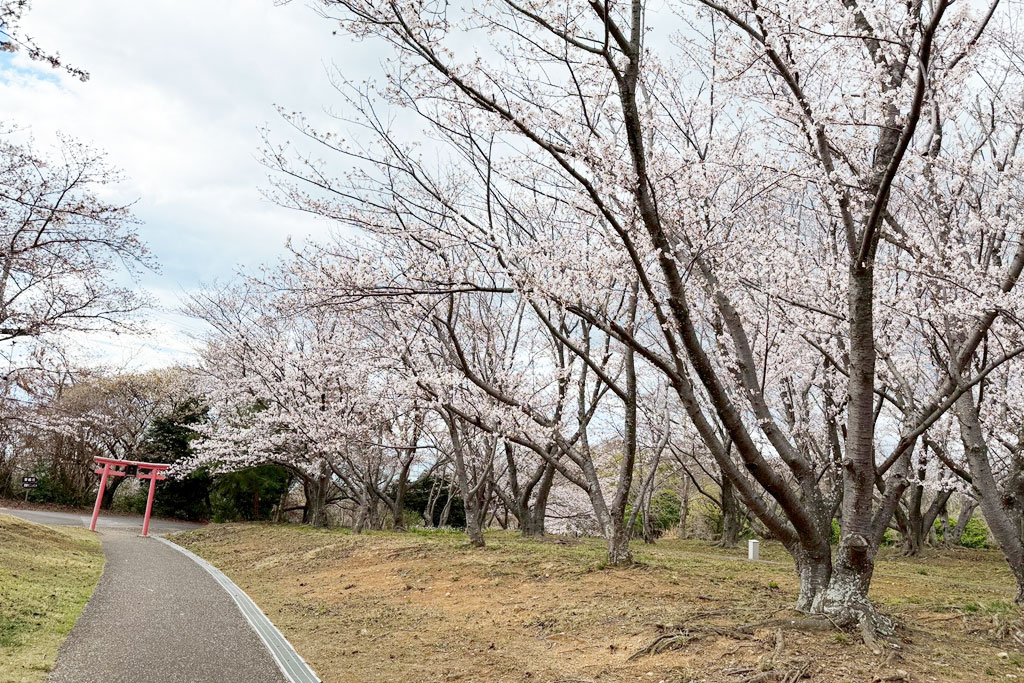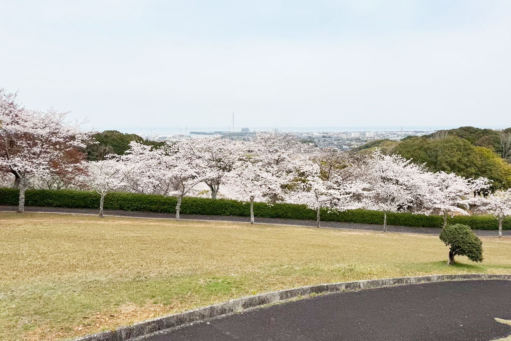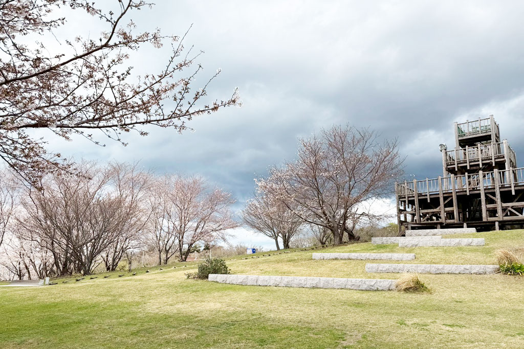 高台に位置し、桜とあわせて景色も楽しめる花見スポット。園内には広場や遊具もあり、地元の人に親しまれている落ち着いた雰囲気の公園です。開けた場所からの見晴らしもよく、ゆったりとした時間を過ごせます。