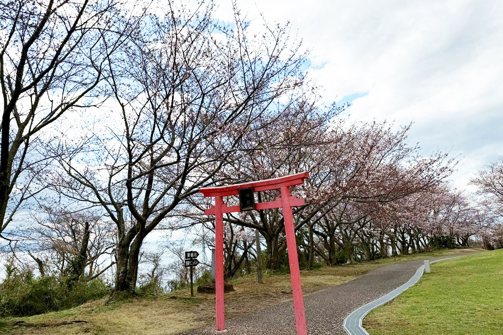 海と桜を一緒に楽しめるロケーションが魅力の花見スポット。園内は神社へと続く参道や高台があり、歩きながらさまざまな角度で桜の景色を楽しめます。海を背景にした桜はここならではで、写真を撮りながらゆっくり過ごすのにもおすすめです。