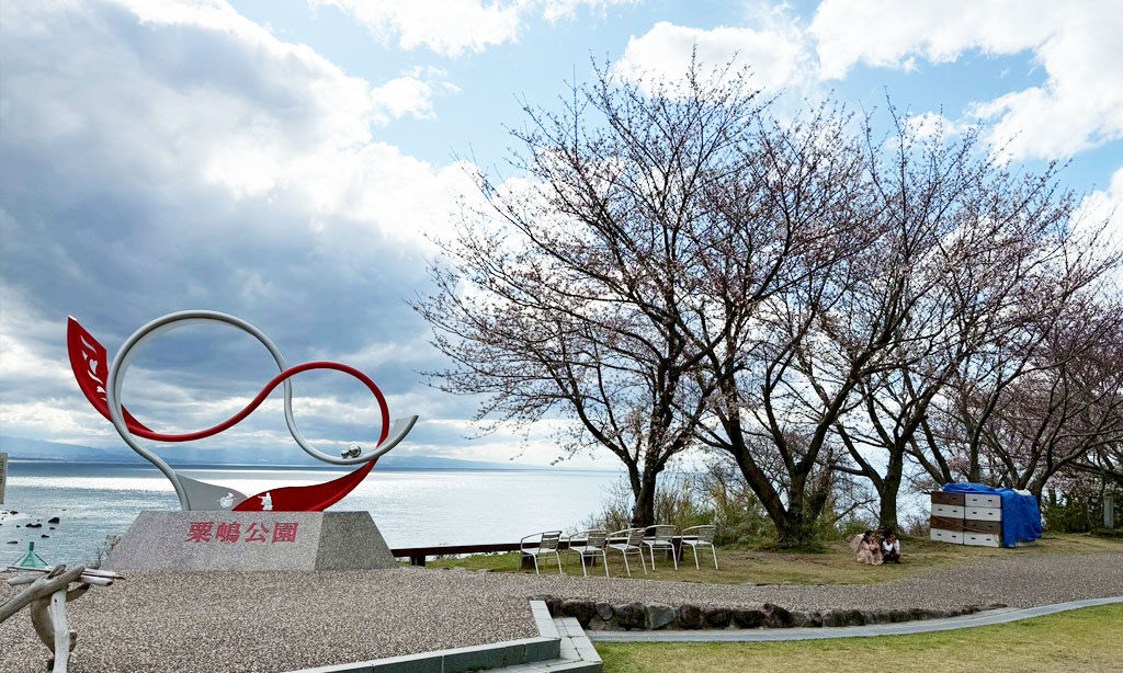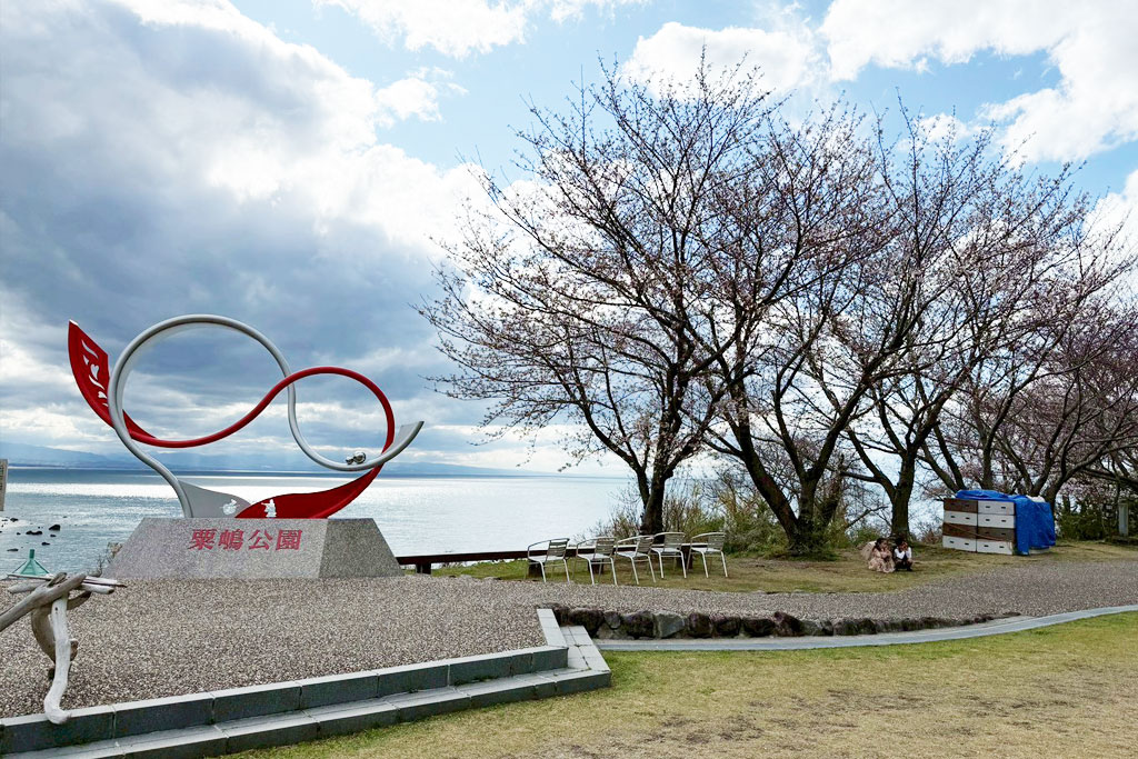 海と桜を一緒に楽しめるロケーションが魅力の花見スポット。園内は神社へと続く参道や高台があり、歩きながらさまざまな角度で桜の景色を楽しめます。海を背景にした桜はここならではで、写真を撮りながらゆっくり過ごすのにもおすすめです。