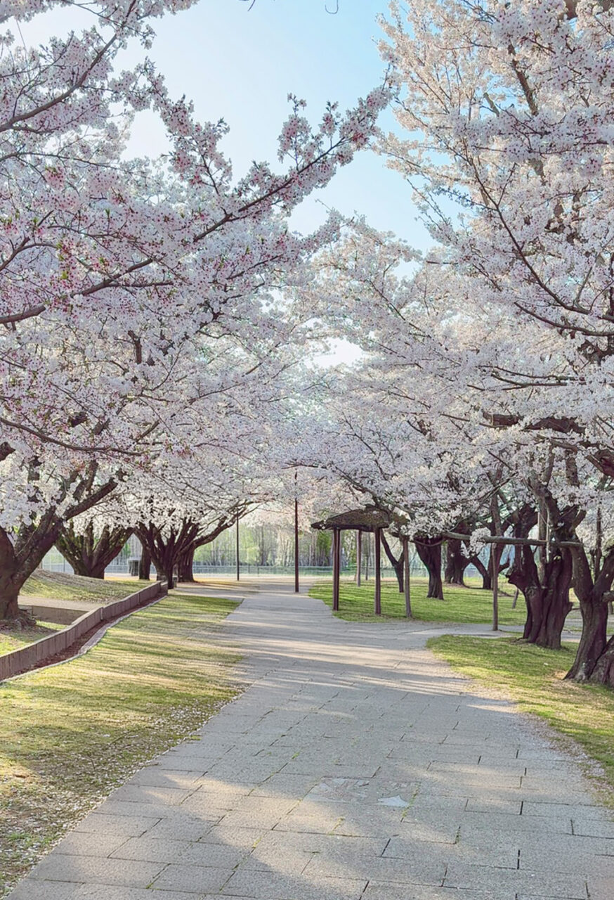 通り沿いには約1300本のソメイヨシノが並び、春になるとやわらかな白・ピンク色の景色が広がります。