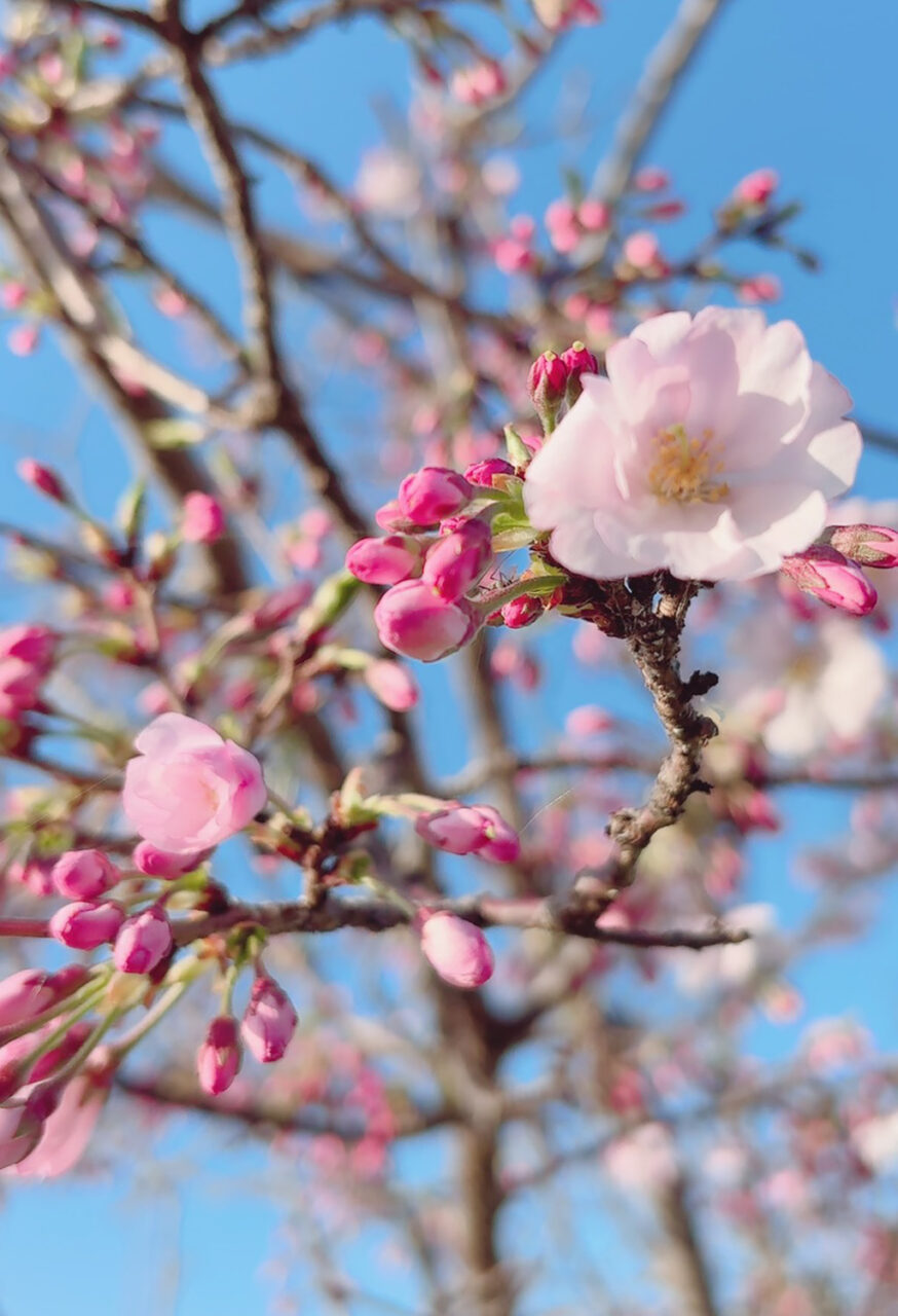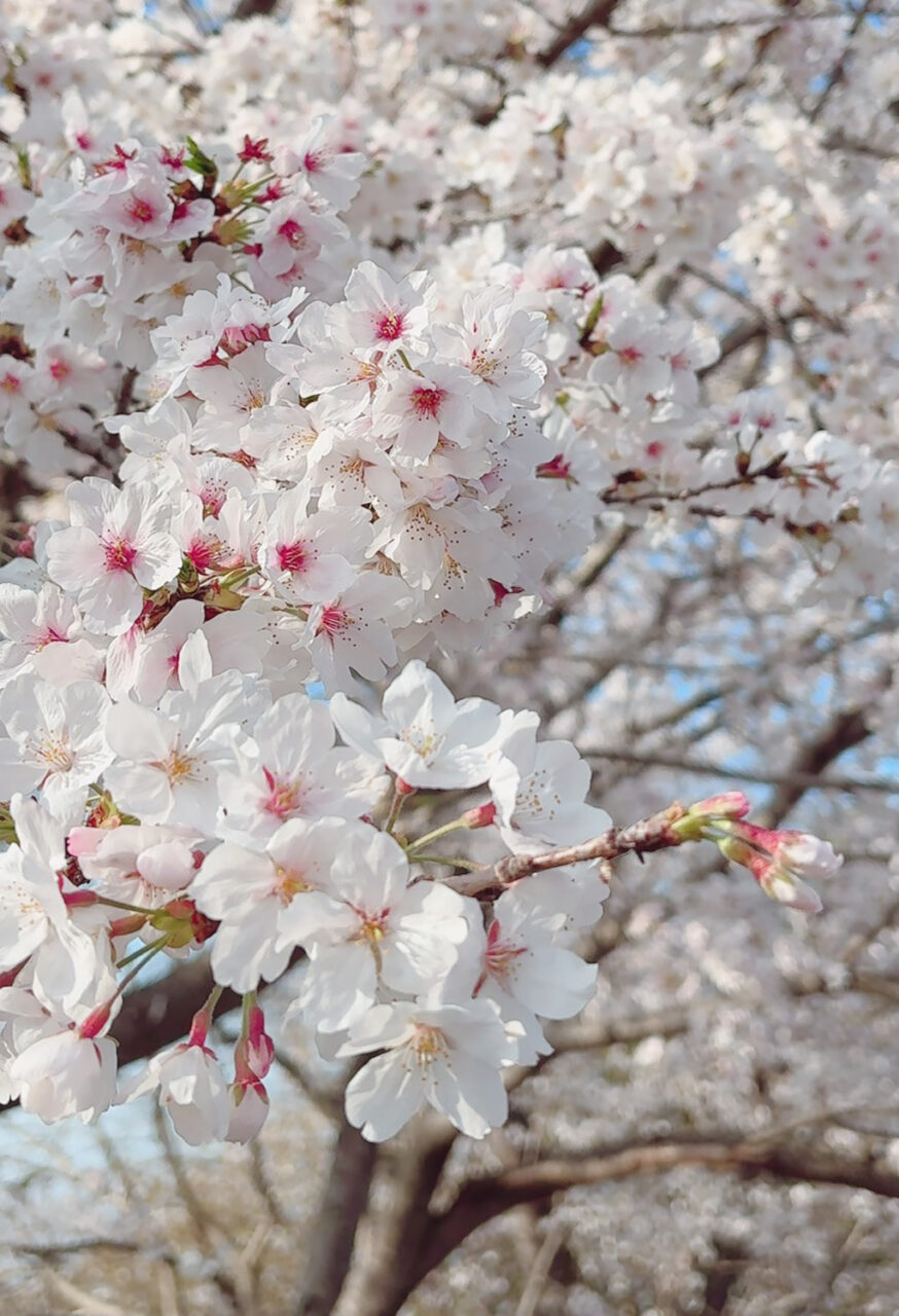 桜は比較的低い位置に枝を広げているため、目線の高さで花を楽しめるのが魅力。写真映えも抜群で、ふんわりとした春らしい一枚が撮れます。