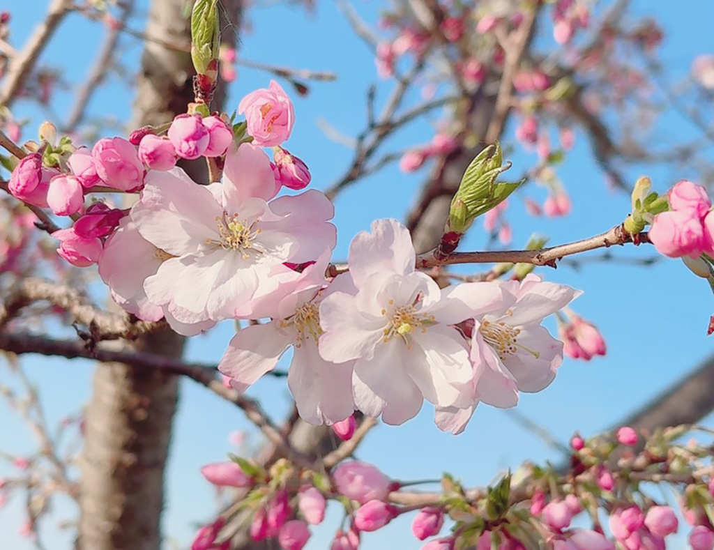 桜は比較的低い位置に枝を広げているため、目線の高さで花を楽しめるのが魅力。写真映えも抜群で、ふんわりとした春らしい一枚が撮れます。