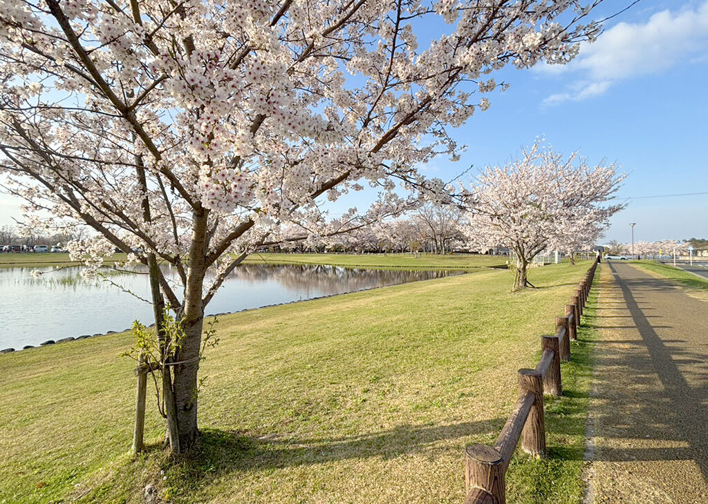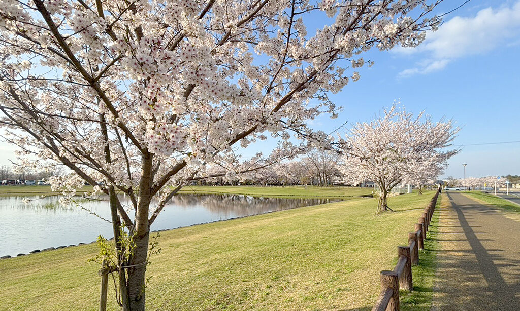 ダイハツ九州スポーツパーク大貞周辺は毎年たくさんの桜が咲き誇り、春の風物詩となっています。昼も夜も楽しめる春ならではの景色をご紹介!