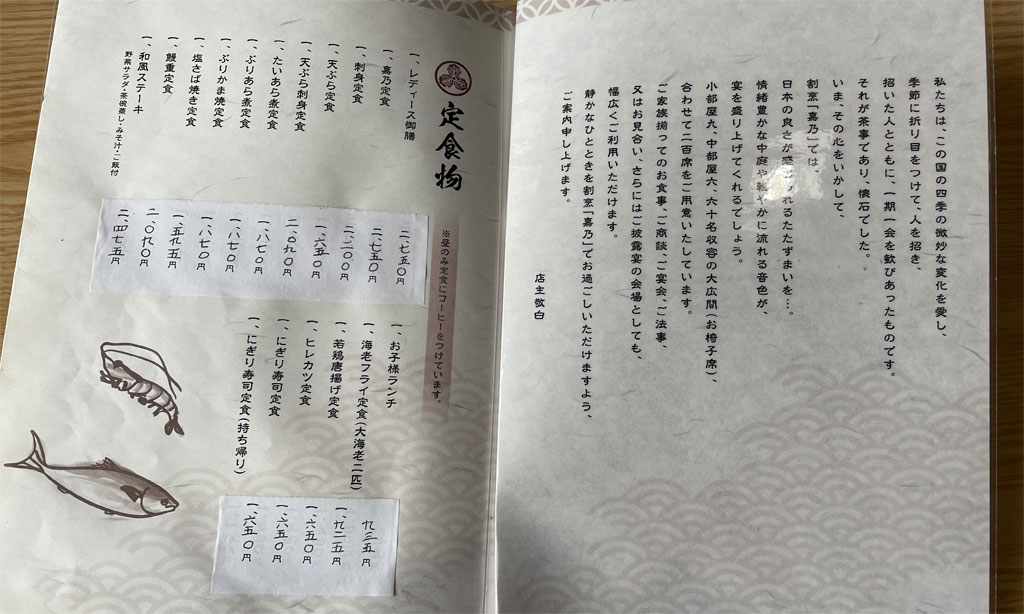 他にも様々な昼定食がある『割烹 嘉乃』。