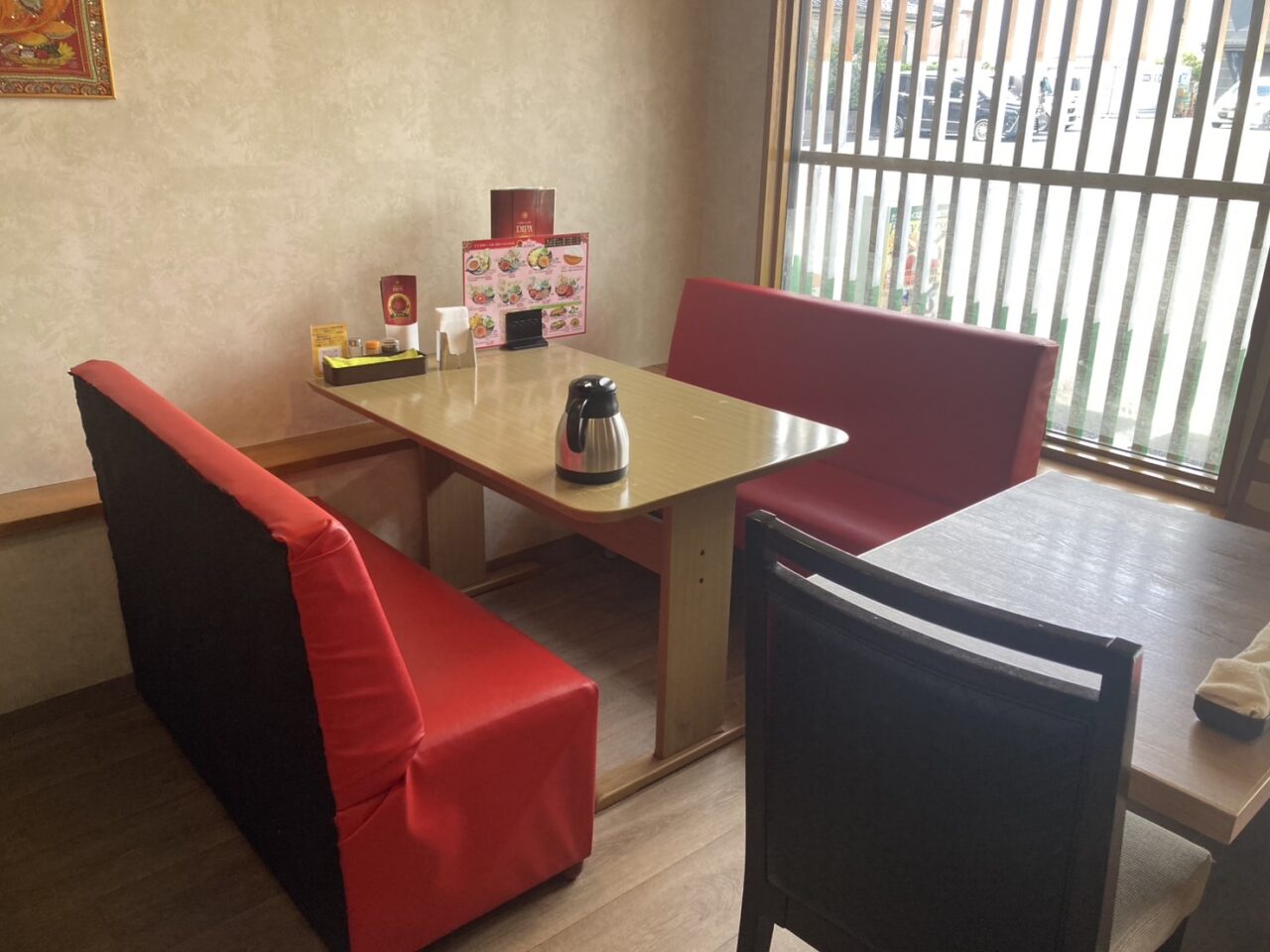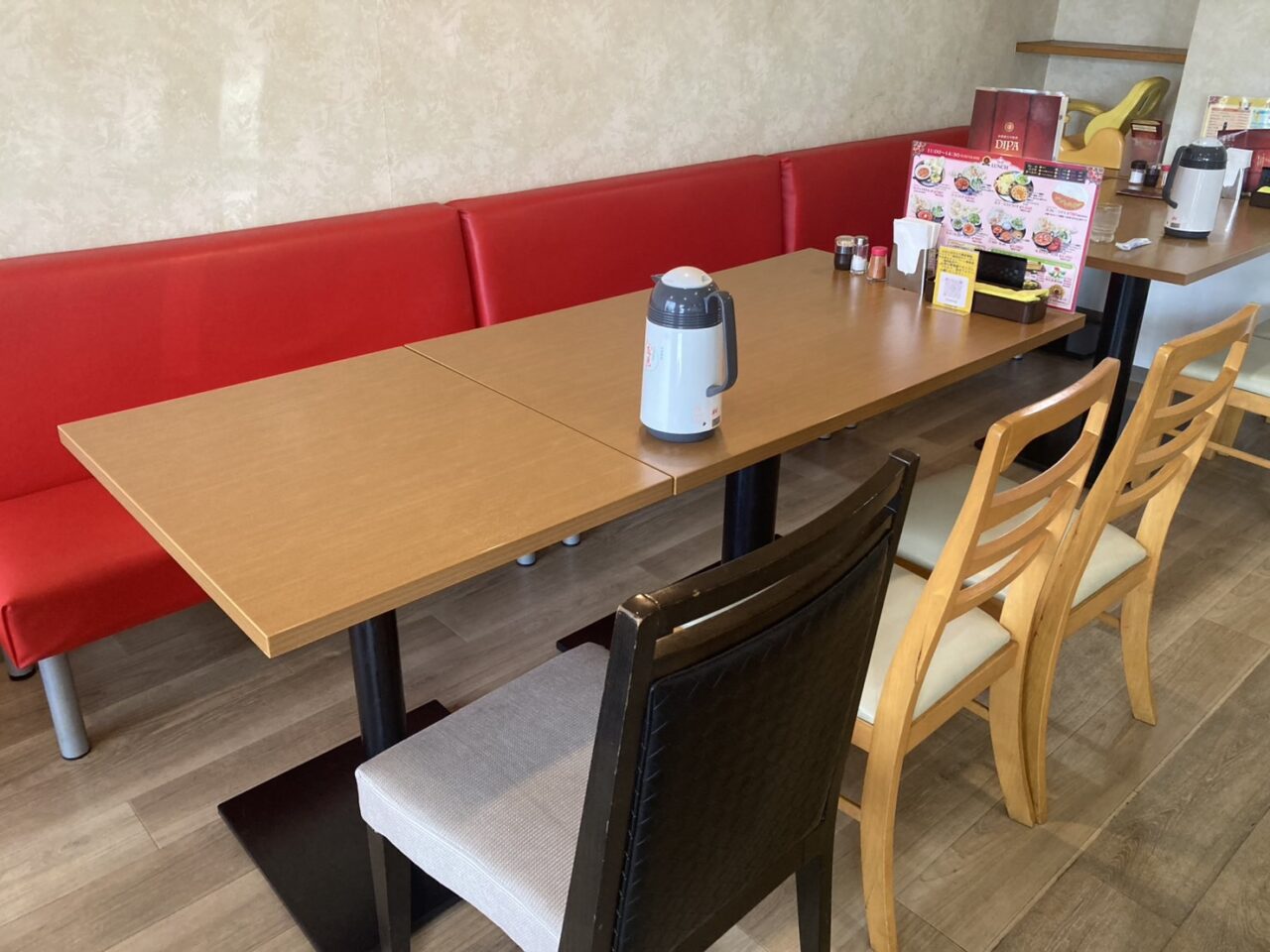 店内は4人掛けテーブル3つ、6人掛けテーブル1つ、2人掛けテーブルが1つとなっています。