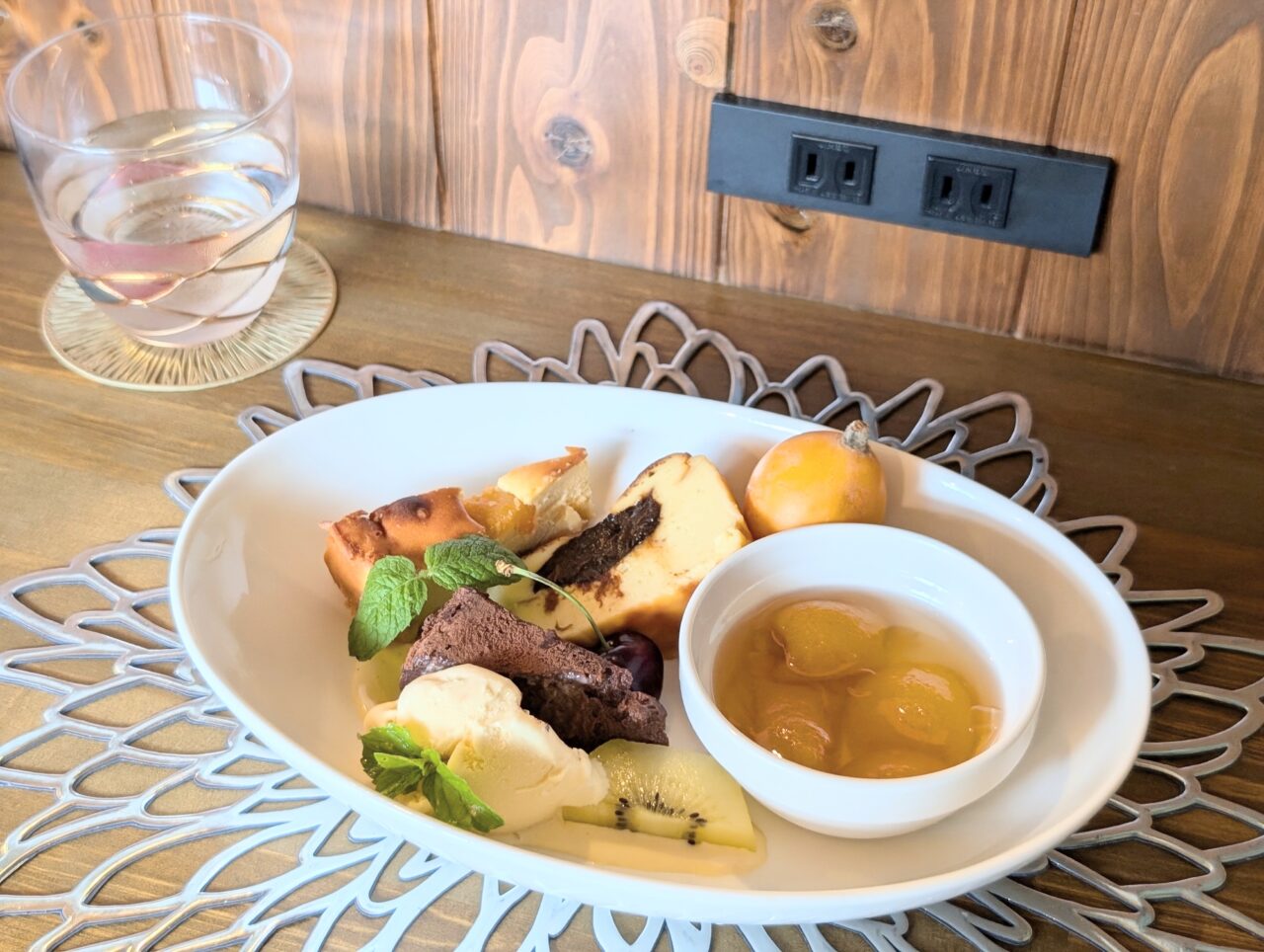 食後にスイーツプレート(880円)を注文しました。スイーツプレートは日替わりなのでその日によって違いますが、3~4種類のスイーツが盛られています。