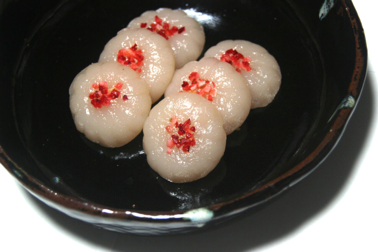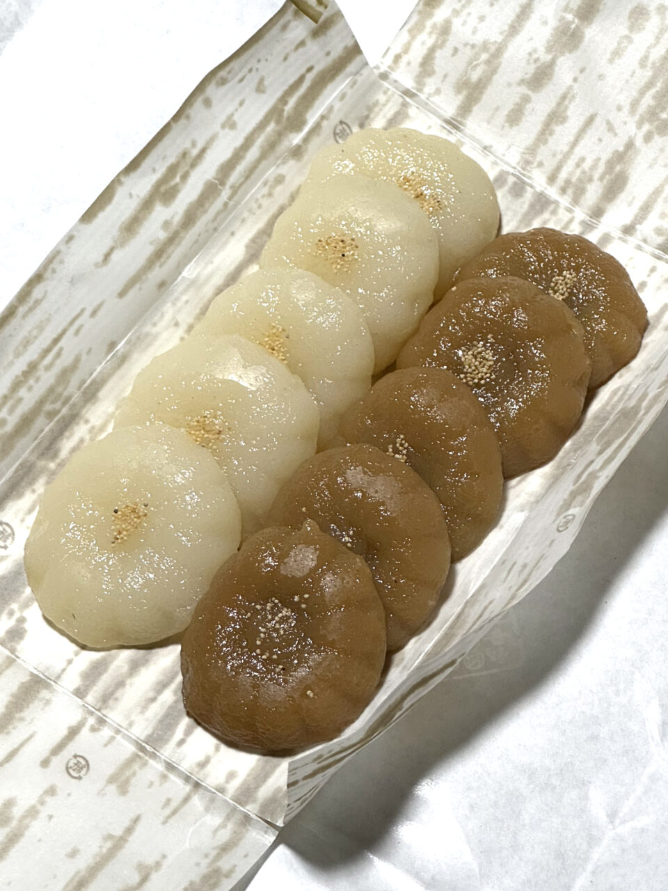 もっちりとした独特の食感に、上品な甘さとほんのり効いたショウガの風味。白と黒の2色が定番ですが、今回桜色の『ストロベリームーン外郎』も合わせて発売中です。