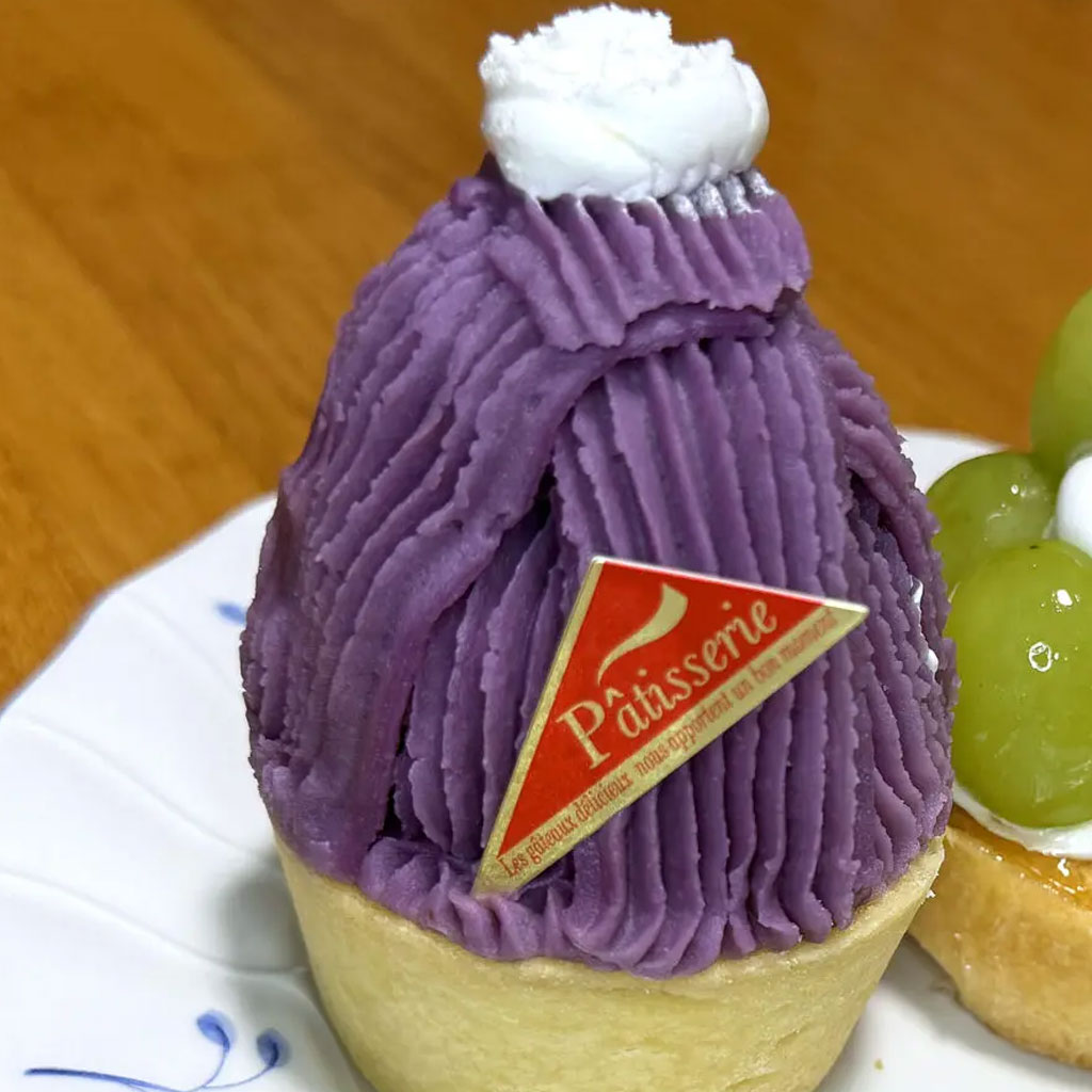ムラサキ芋モンブランは、まろやかな甘さと濃厚な風味が魅力。中には栗が丸ごと入っていて、食べ進める楽しさもあります。