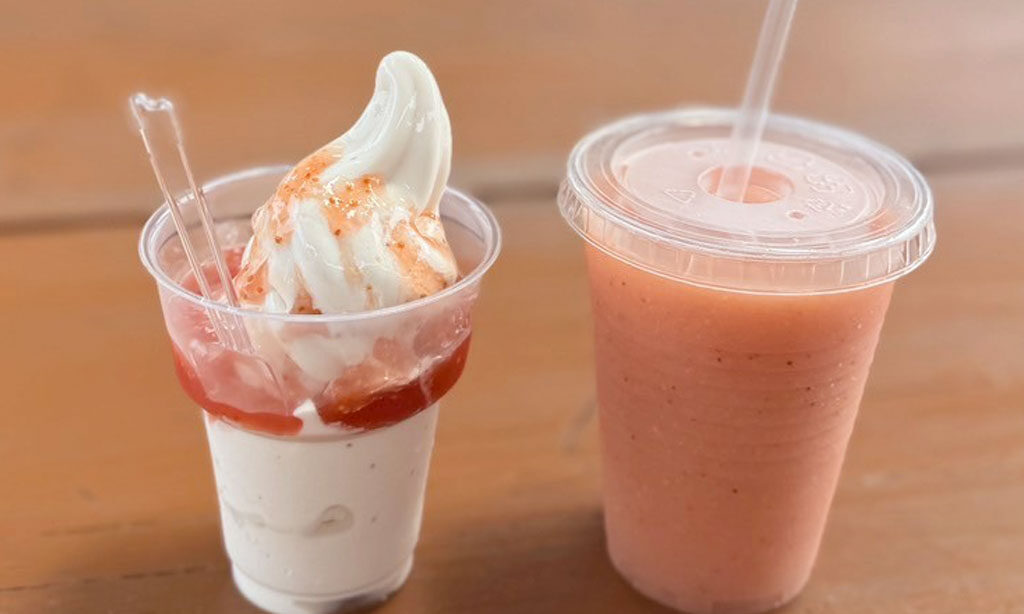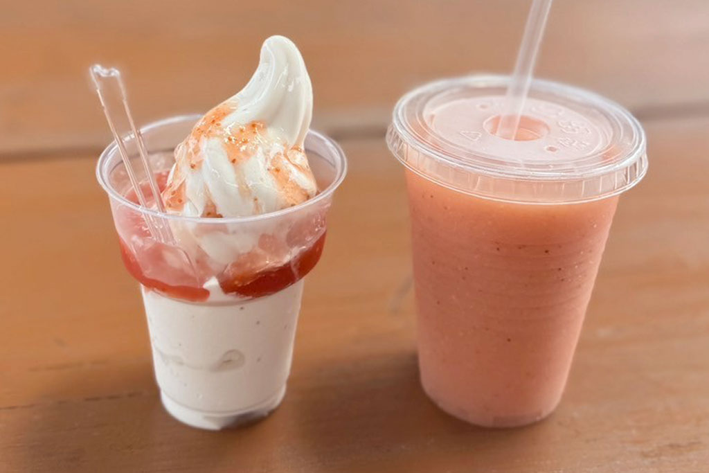 豊前産いちじくを練り込んだソフトクリームは、ぷちぷち食感が楽しく、濃厚ソースと重なって甘酸っぱさとクリーミーさが絶妙。