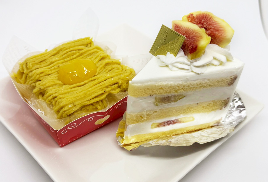 季節のフルーツを使ったショートケーキとモンブラン。ショートケーキはいちじくが主役で、みずみずしい甘さと軽やかなクリームが絶妙。モンブランはなめらかなマロンクリームが贅沢に絞られ、ほどよい甘さで最後まで飽きずに楽しめました。