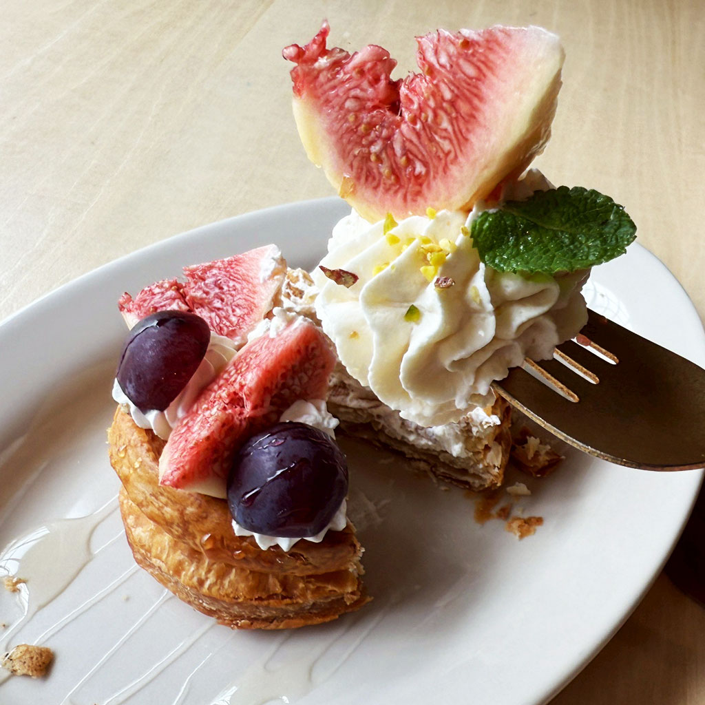 ザクザク食感のパイとフルーツの爽やかさが重なり、いちじくやぶどうの風味がしっかり楽しめます。