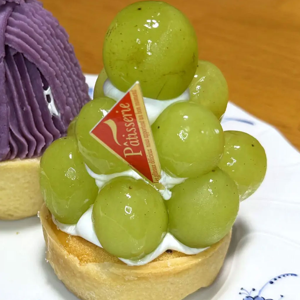 シャインマスカットを贅沢にのせたブドウのタルトは、爽やかな甘みとジューシーさが広がる華やかな一品。ひと口ごとに幸せを感じるご褒美スイーツです。