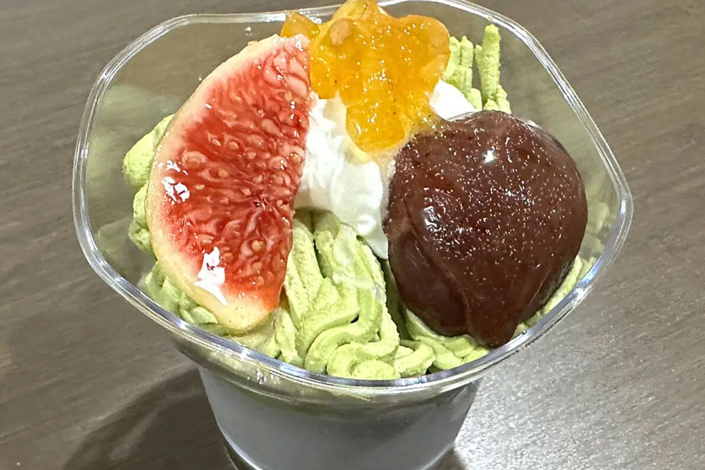 黒ごまプリンの上に秋の実りを贅沢にのせたスイーツは、見た目も華やかで、香ばしさとまろやかさが絶妙にマッチします。