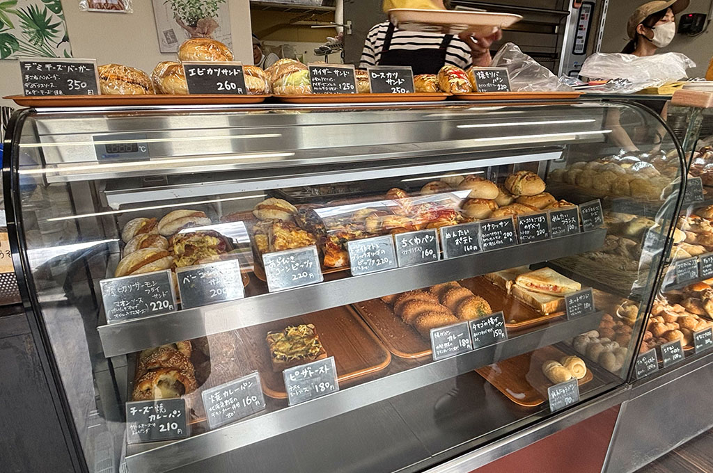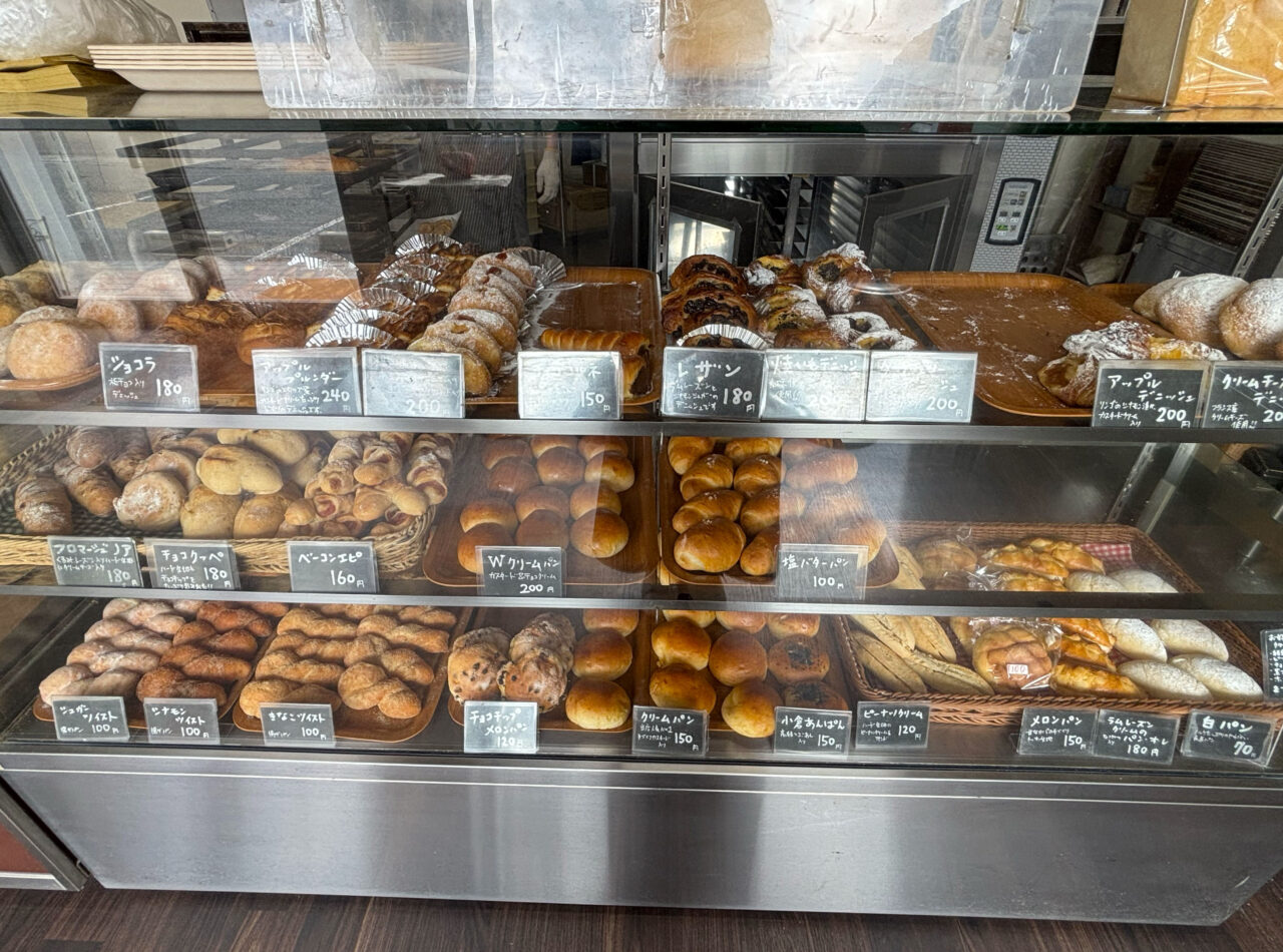 店内に入ると、ガラスケースの中に焼きたてのパンがずらりと並び、思わず目移りしてしまうほど。