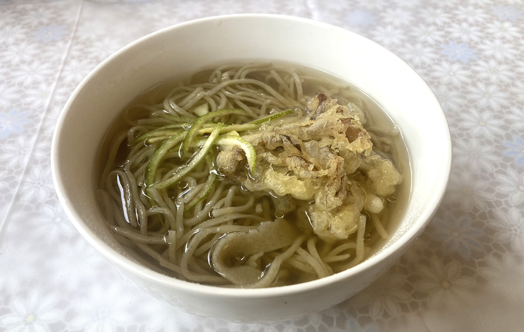 そばに練り込まれたゆずは院内産、添えられているゆずは本耶馬渓産という地元づくし。そばの香りにゆずの爽やかな風味が加わり、とても上品な味わいに。さっぱりとした後味が心地よく、秋晴れの空にぴったりの一杯でした。