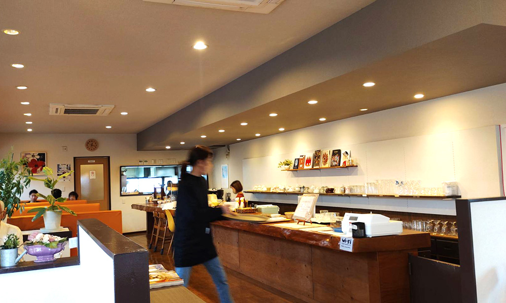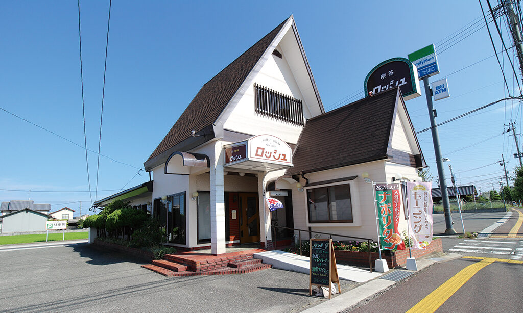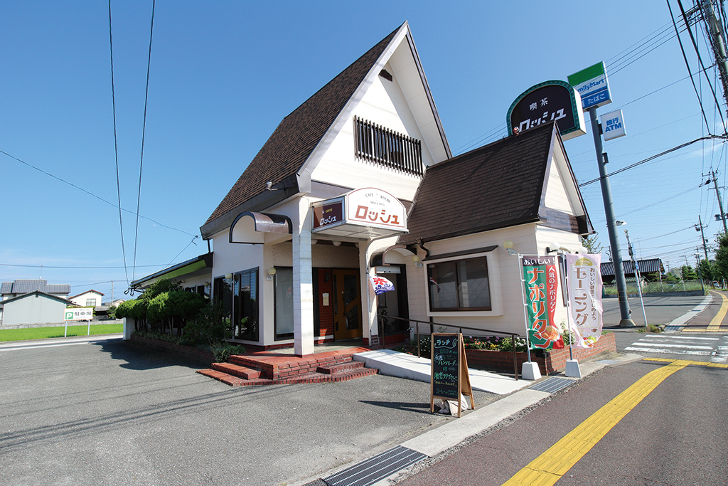中津市中央町の国道212号線沿いにある『喫茶ロッシュ』。木の温もりに包まれた店内は、どこか懐かしさを感じる落ち着いた空間。