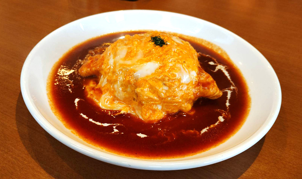 気分はビビンバは「オムデミライス」。ふわとろの卵の上からたっぷりとかかったデミグラスソースは、深みのあるコクとまろやかな甘みが絶妙。中はケチャップライスで、スプーンを入れるたびにソースとご飯、卵がとろけるように混ざり合います。老舗喫茶ならではの“手づくり感”が嬉しい、丁寧であたたかい一皿でした。