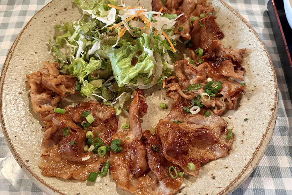 そしてメインの生姜焼きは、大皿にたっぷりと盛られています。