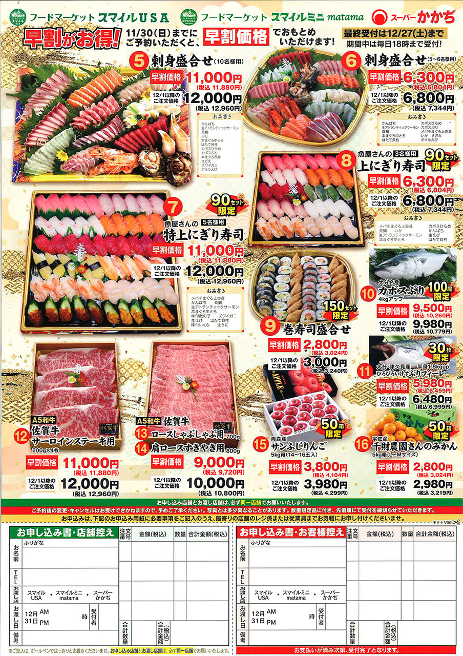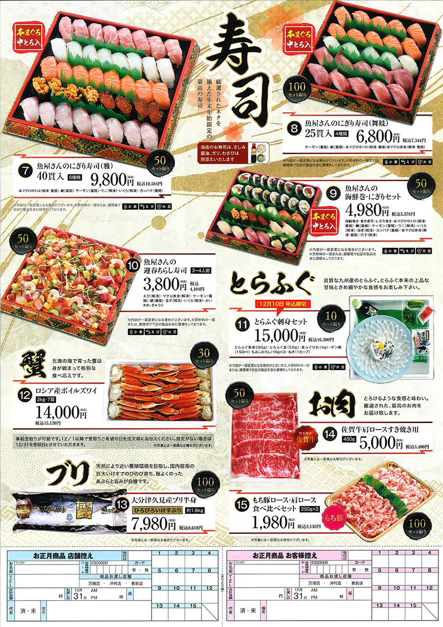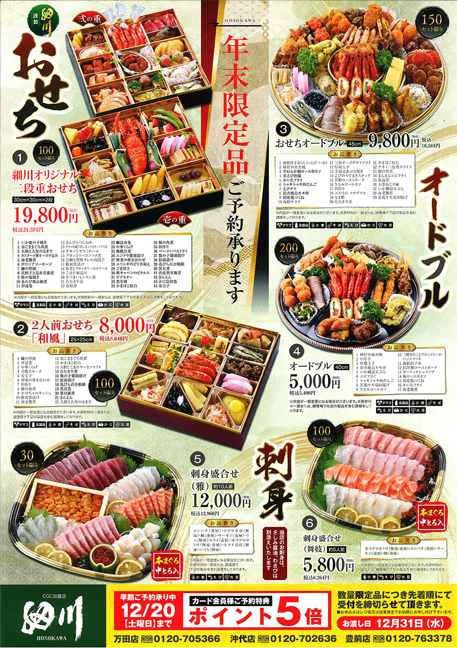 その他オードブル、お刺身等年末限定品が数多くラインナップされています。