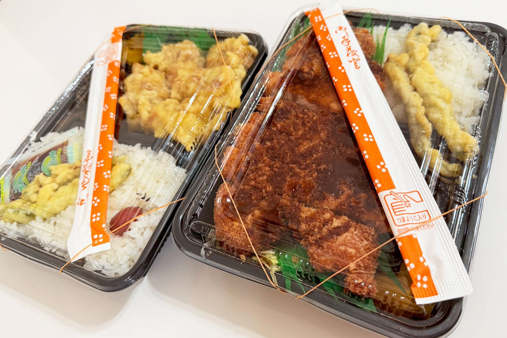今回は「とんかつ弁当」と、ちょうど出来立てだった「とり天弁当」をいただきました!