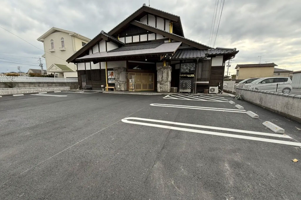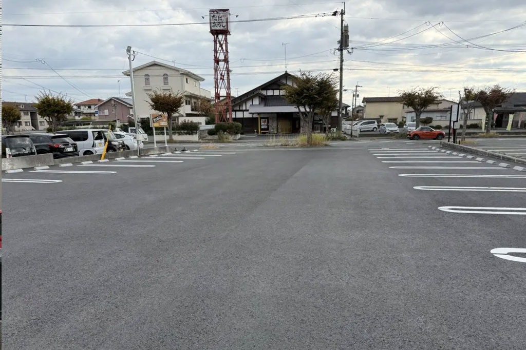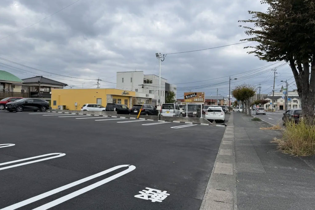 これまで店舗前、店舗横にも駐車スペースがあったのですが、2025年11月より道を挟んだ店舗正面に20台を駐車できる広大な駐車場を増設!! 店舗敷地内駐車場には5台駐車可能。合計25台を駐車できます。また店舗前駐車場には新たに駐輪スペースもできました。