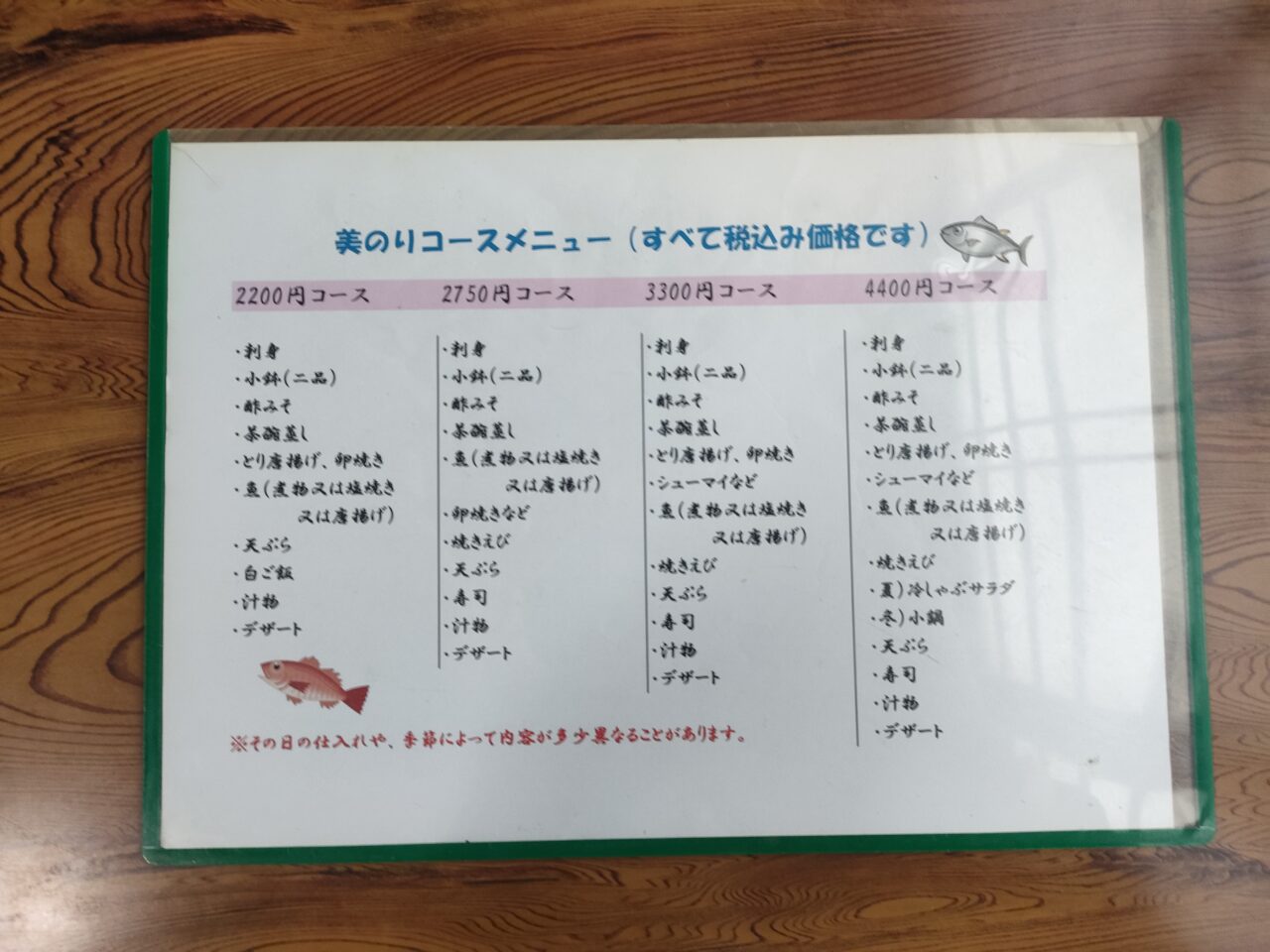また、こちらは夜に人気の予約制コース料理のメニュー表です。