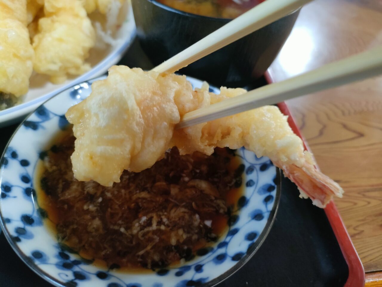 天ぷらは、海老天3尾をはじめ、キスやタイなどの白身魚、かぼちゃやなすやにんじんんなど、魚介+野菜のバラエティがかなり豊富で、一つ一つが大きめです。