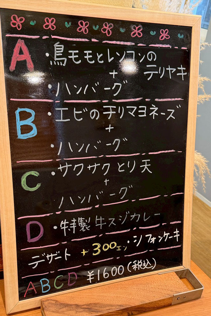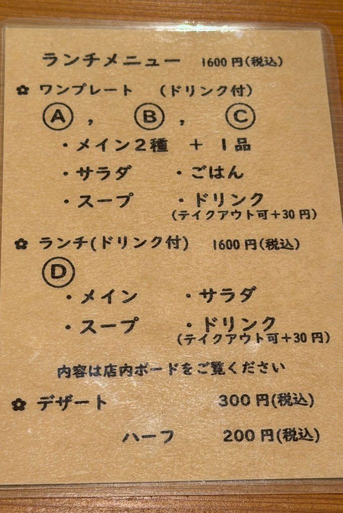 ランチはワンプレート(A/B/C)とランチ(D)から選べるスタイル。